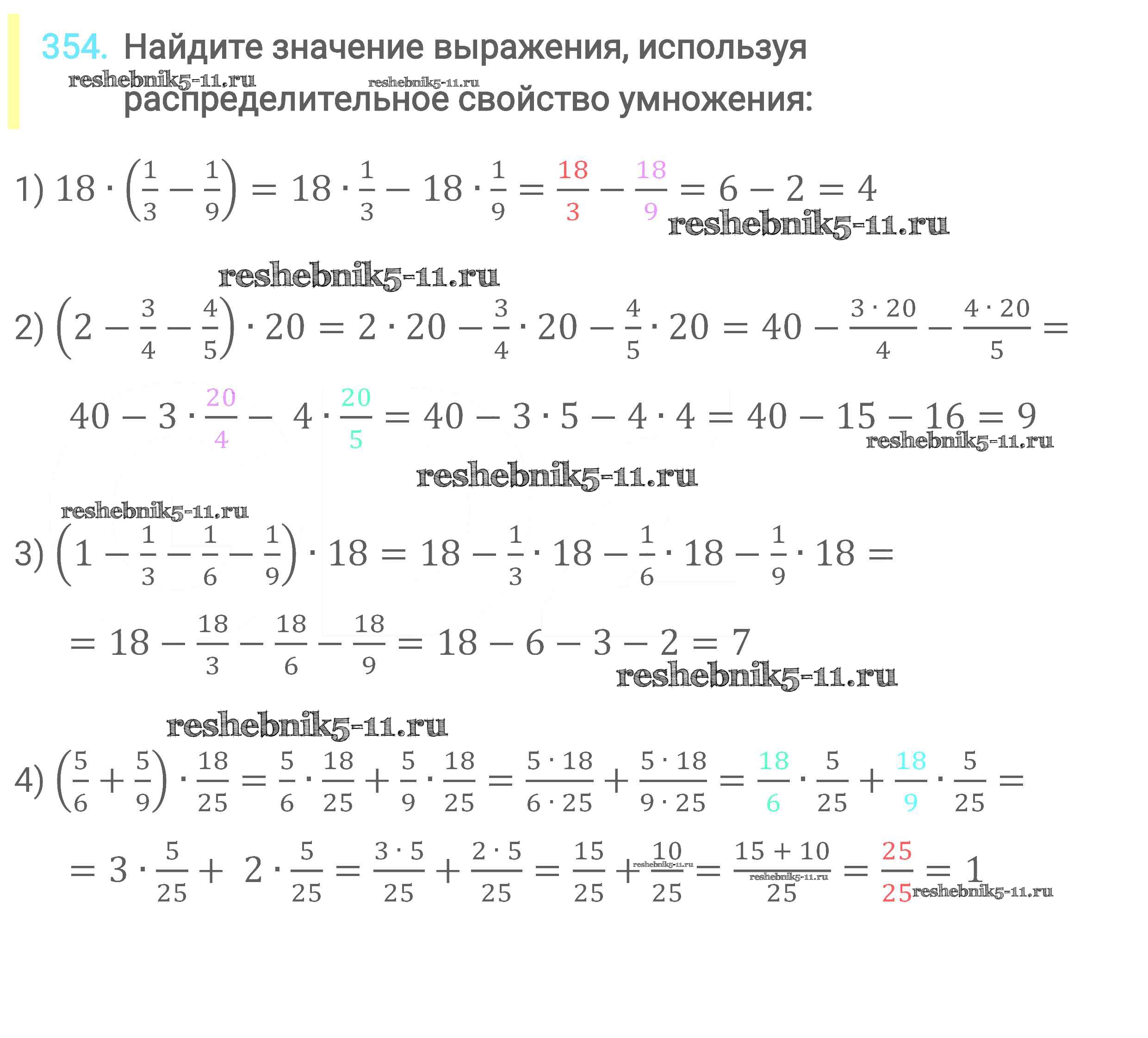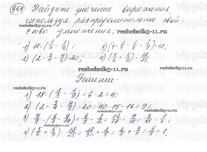 Готовая домашняя работа с ответами по Математике за 6 класс Мерзляк, Полонский, Якир Учебник Алгоритм успеха Вентана-граф 2016 ФГОС - Глава 2. Обыкновенные дроби (упражнения) 354