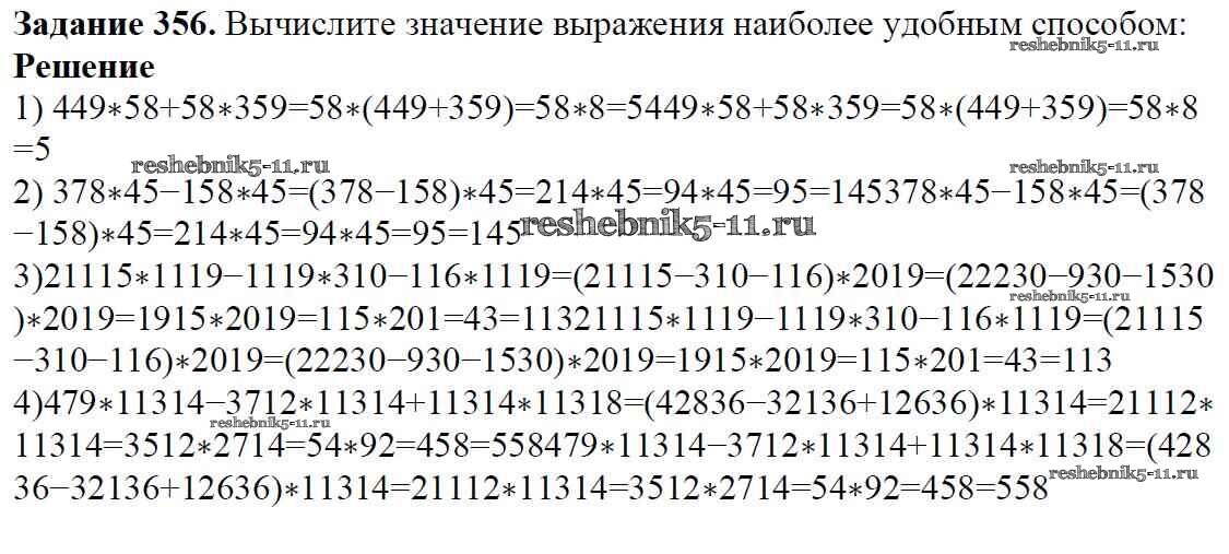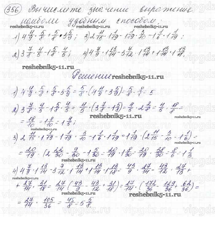 Готовая домашняя работа с ответами по Математике за 6 класс Мерзляк, Полонский, Якир Учебник Алгоритм успеха Вентана-граф 2016 ФГОС - Глава 2. Обыкновенные дроби (упражнения) 356