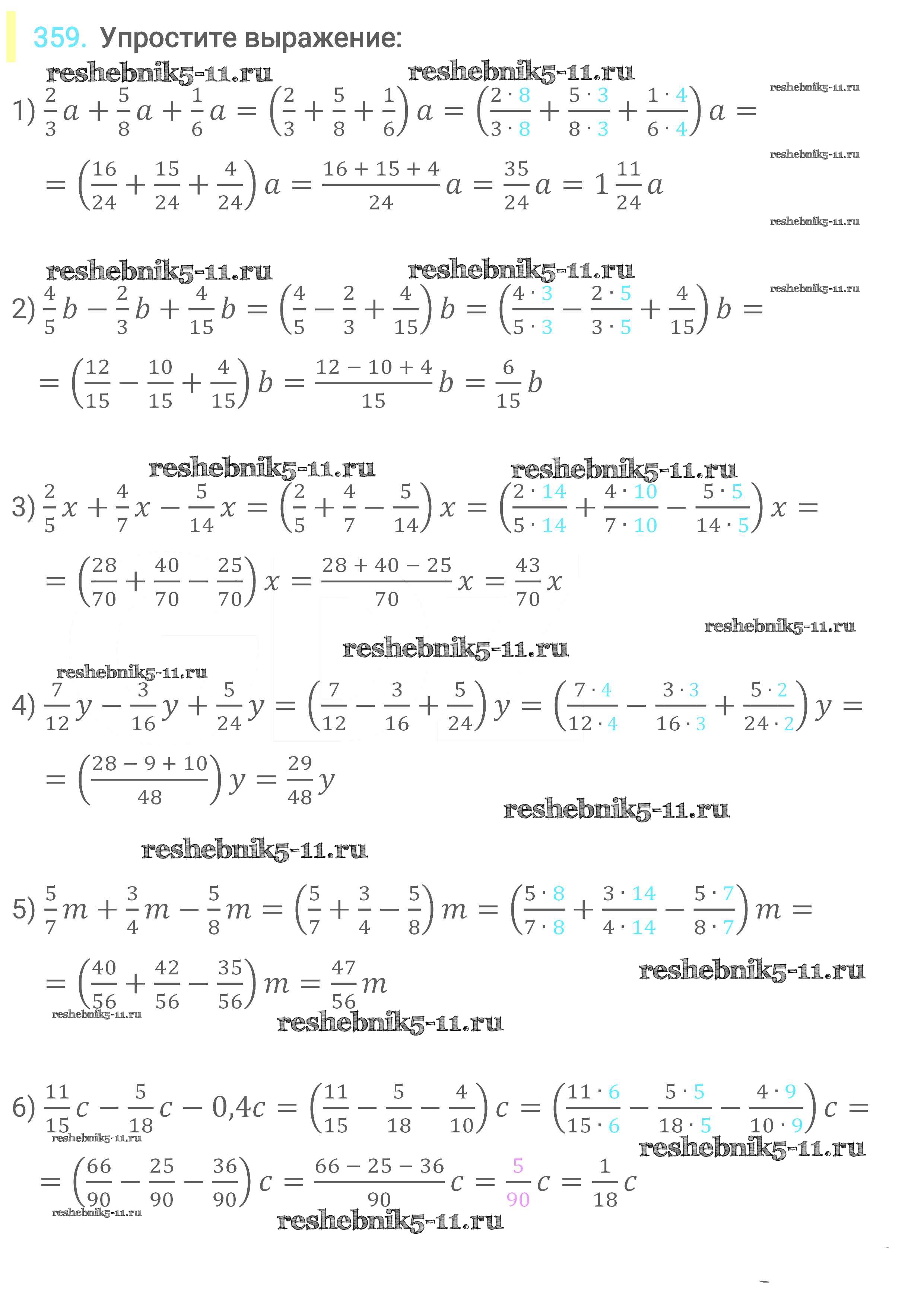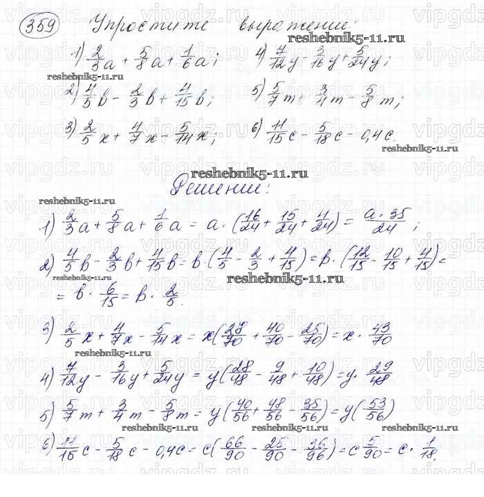 Готовая домашняя работа с ответами по Математике за 6 класс Мерзляк, Полонский, Якир Учебник Алгоритм успеха Вентана-граф 2016 ФГОС - Глава 2. Обыкновенные дроби (упражнения) 359