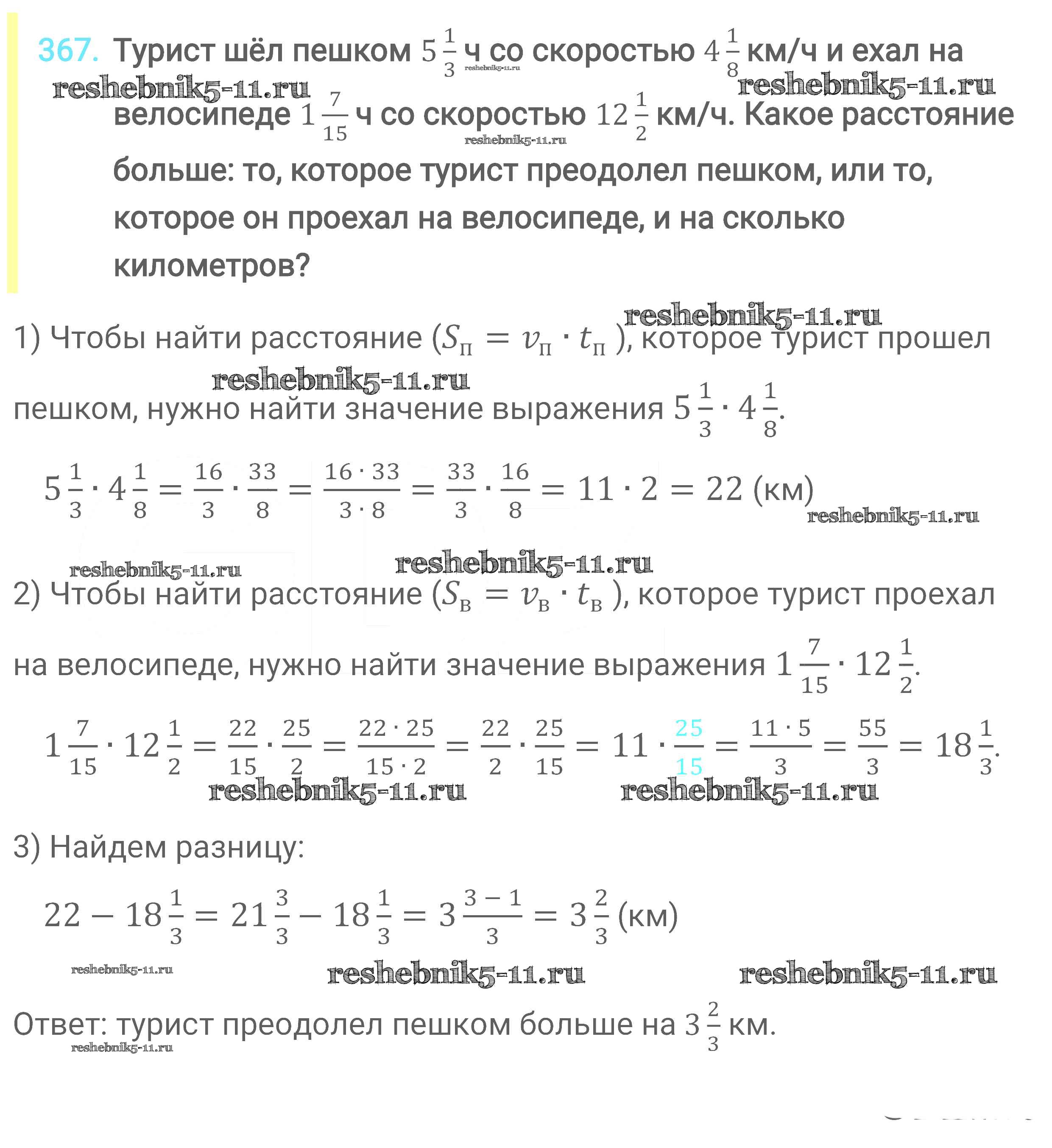 Готовая домашняя работа с ответами по Математике за 6 класс Мерзляк, Полонский, Якир Учебник Алгоритм успеха Вентана-граф 2016 ФГОС - Глава 2. Обыкновенные дроби (упражнения) 367