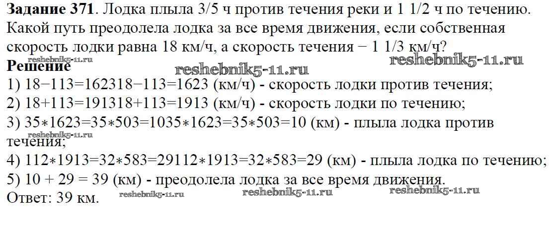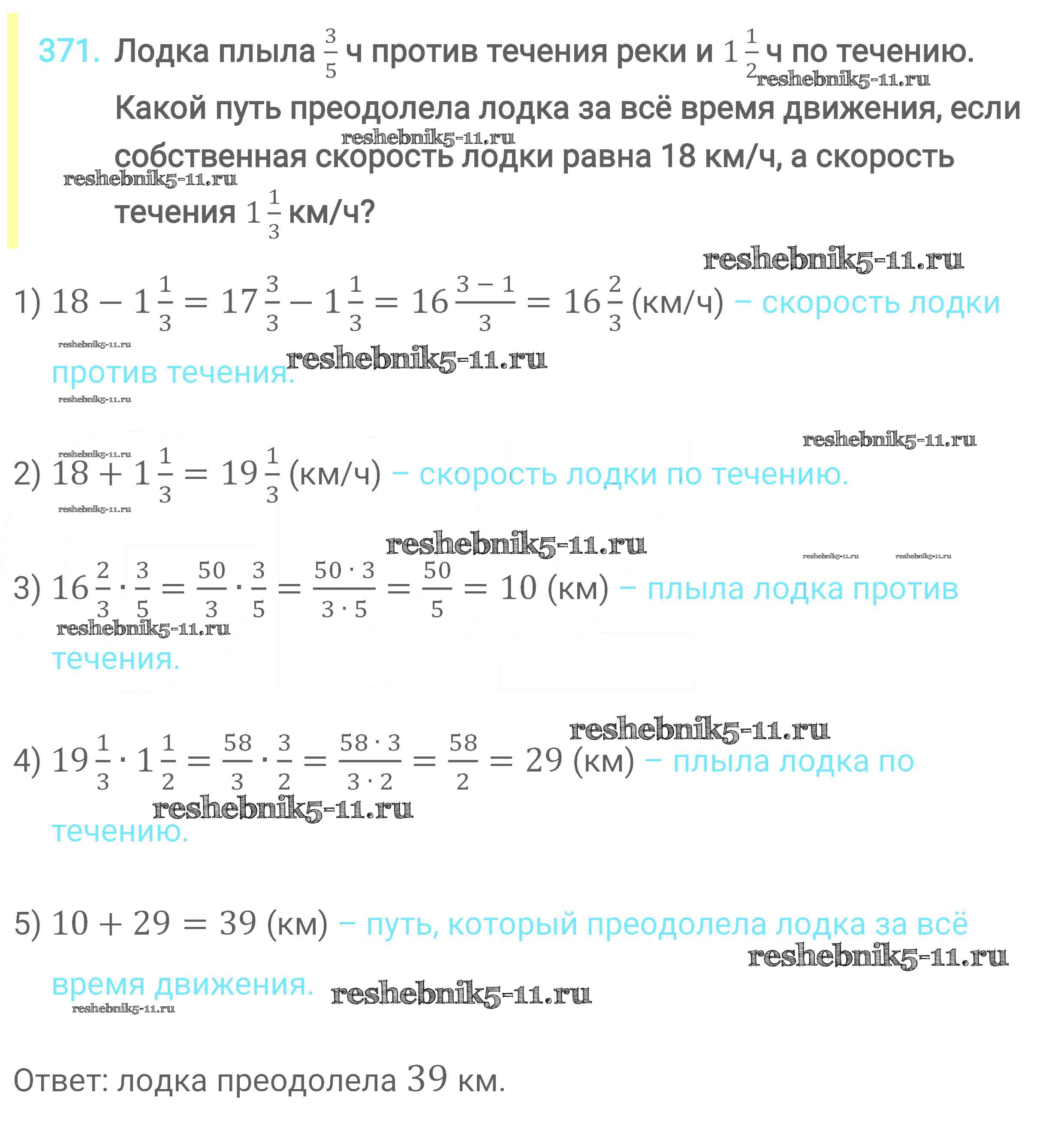 Готовая домашняя работа с ответами по Математике за 6 класс Мерзляк, Полонский, Якир Учебник Алгоритм успеха Вентана-граф 2016 ФГОС - Глава 2. Обыкновенные дроби (упражнения) 371