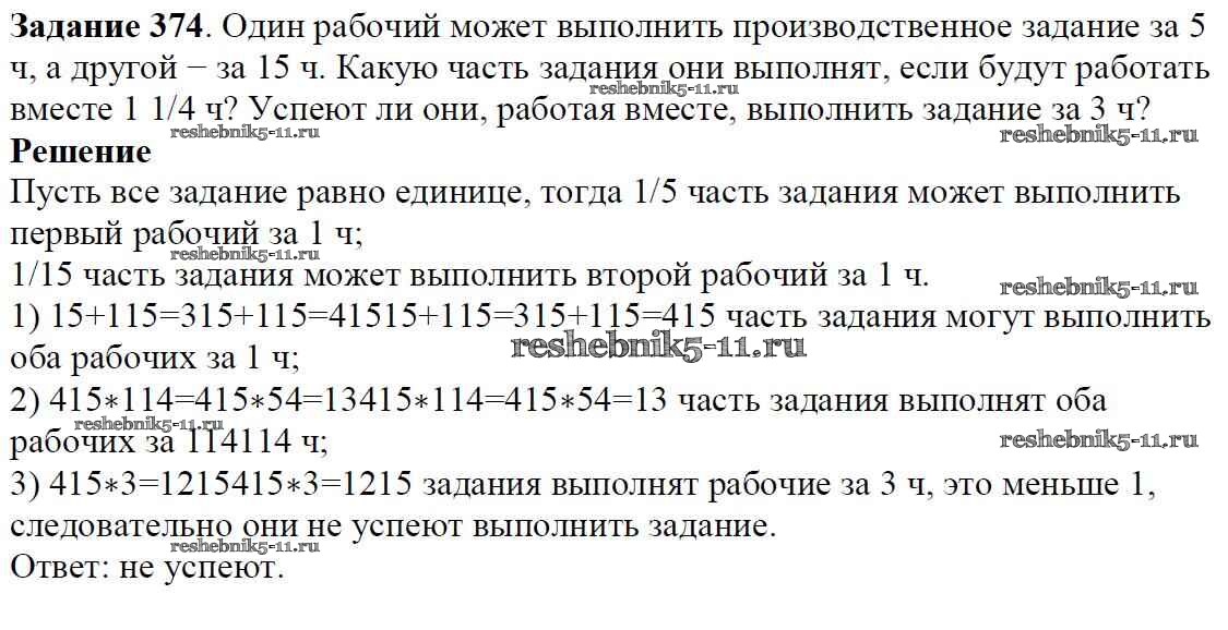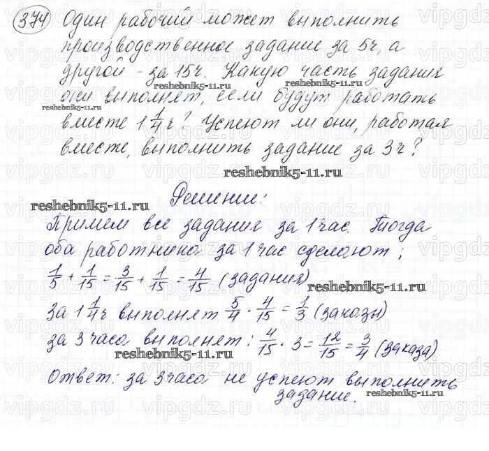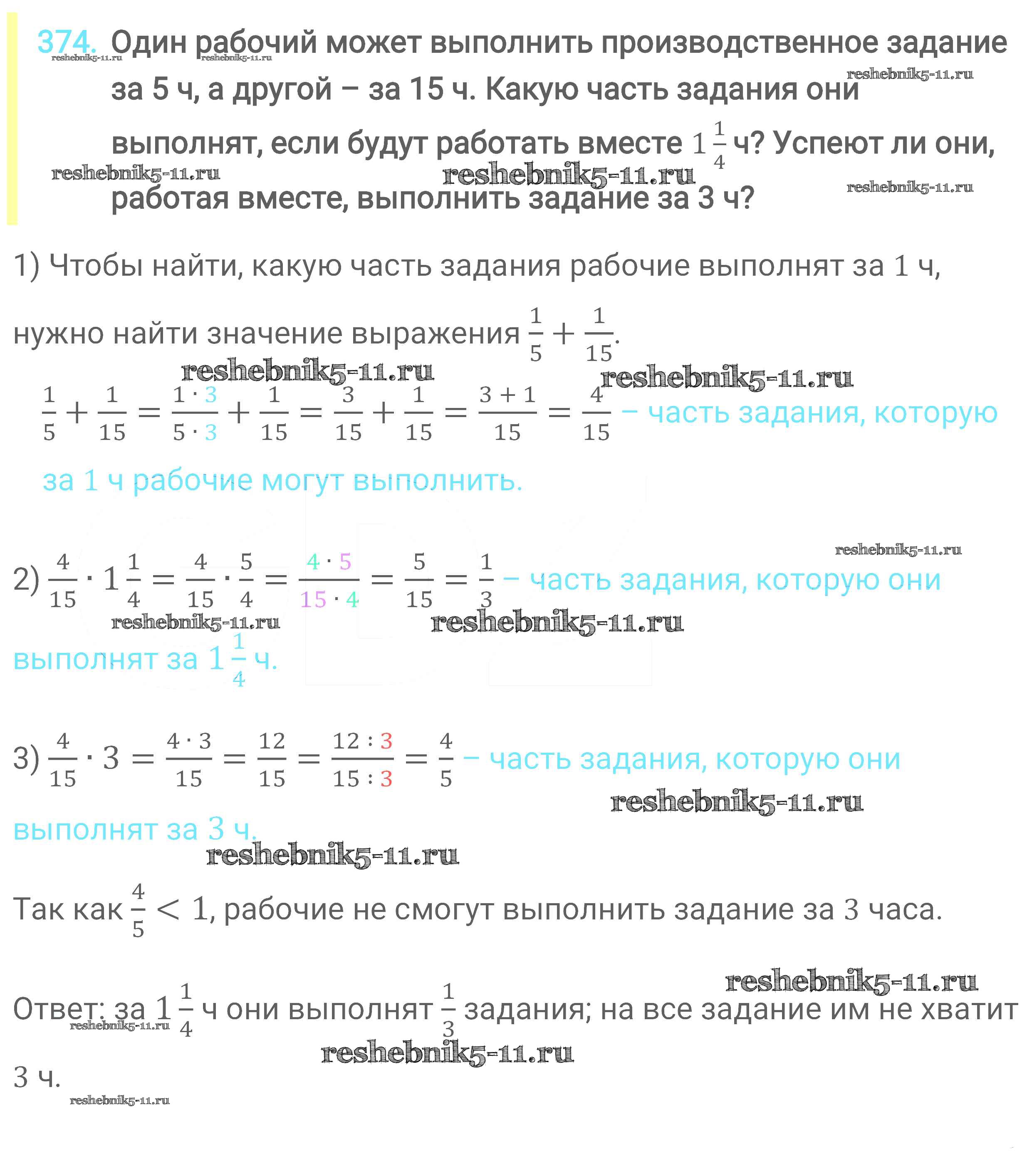 Готовая домашняя работа с ответами по Математике за 6 класс Мерзляк, Полонский, Якир Учебник Алгоритм успеха Вентана-граф 2016 ФГОС - Глава 2. Обыкновенные дроби (упражнения) 374