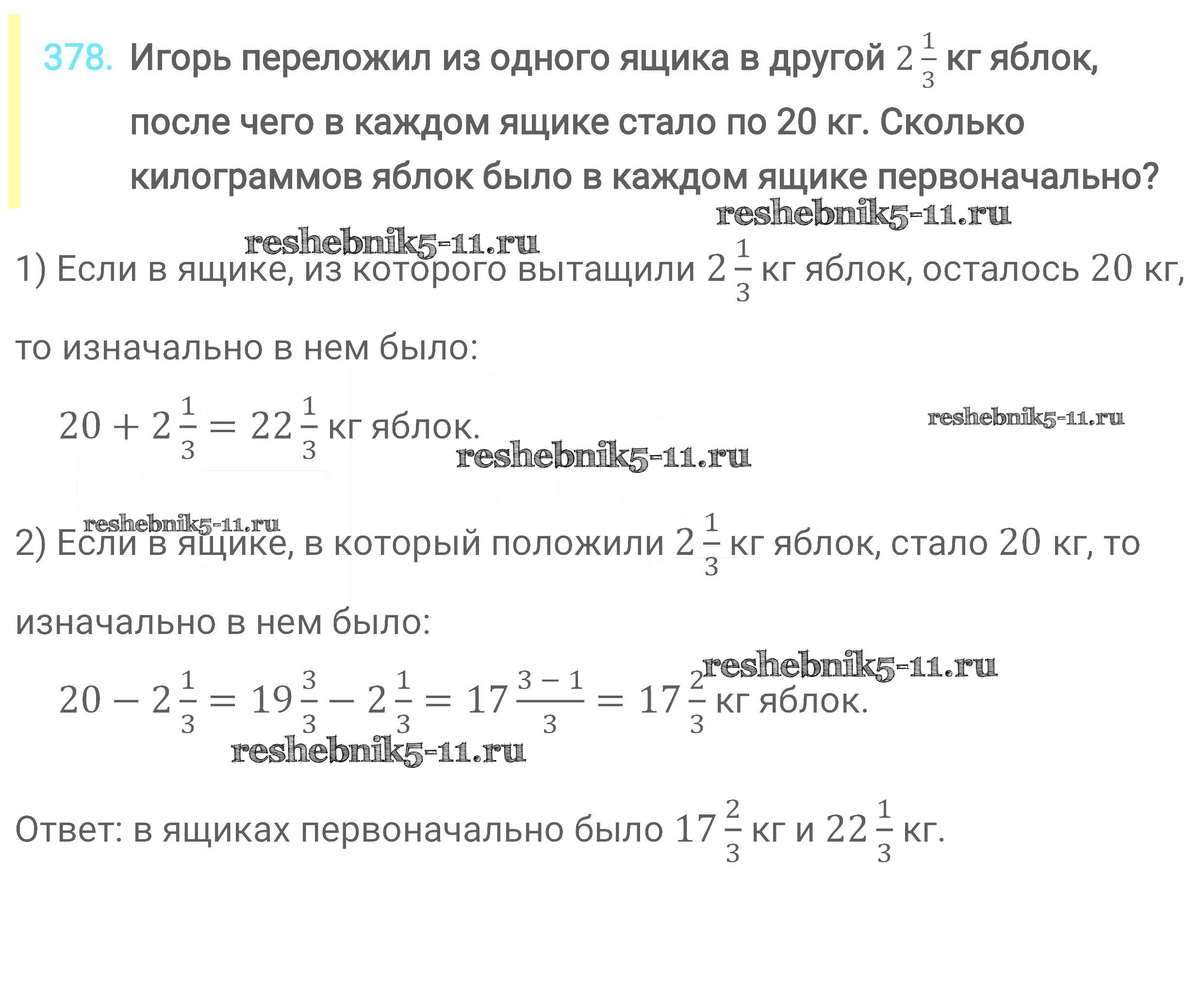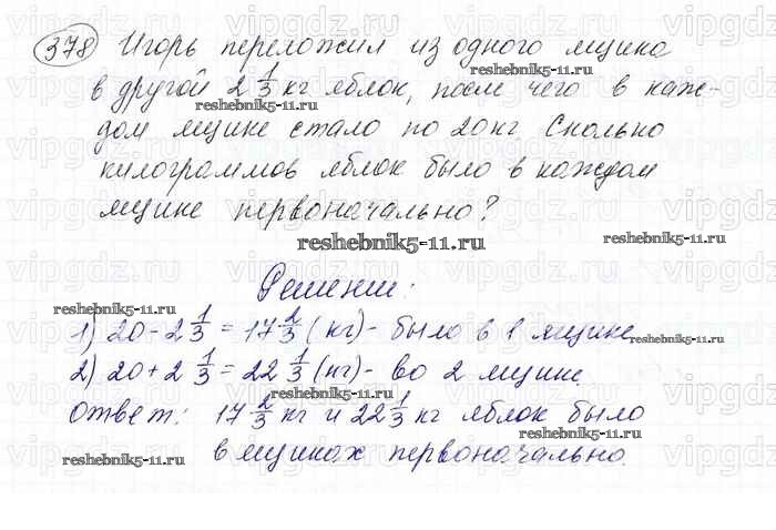 Готовая домашняя работа с ответами по Математике за 6 класс Мерзляк, Полонский, Якир Учебник Алгоритм успеха Вентана-граф 2016 ФГОС - Глава 2. Обыкновенные дроби (упражнения) 378