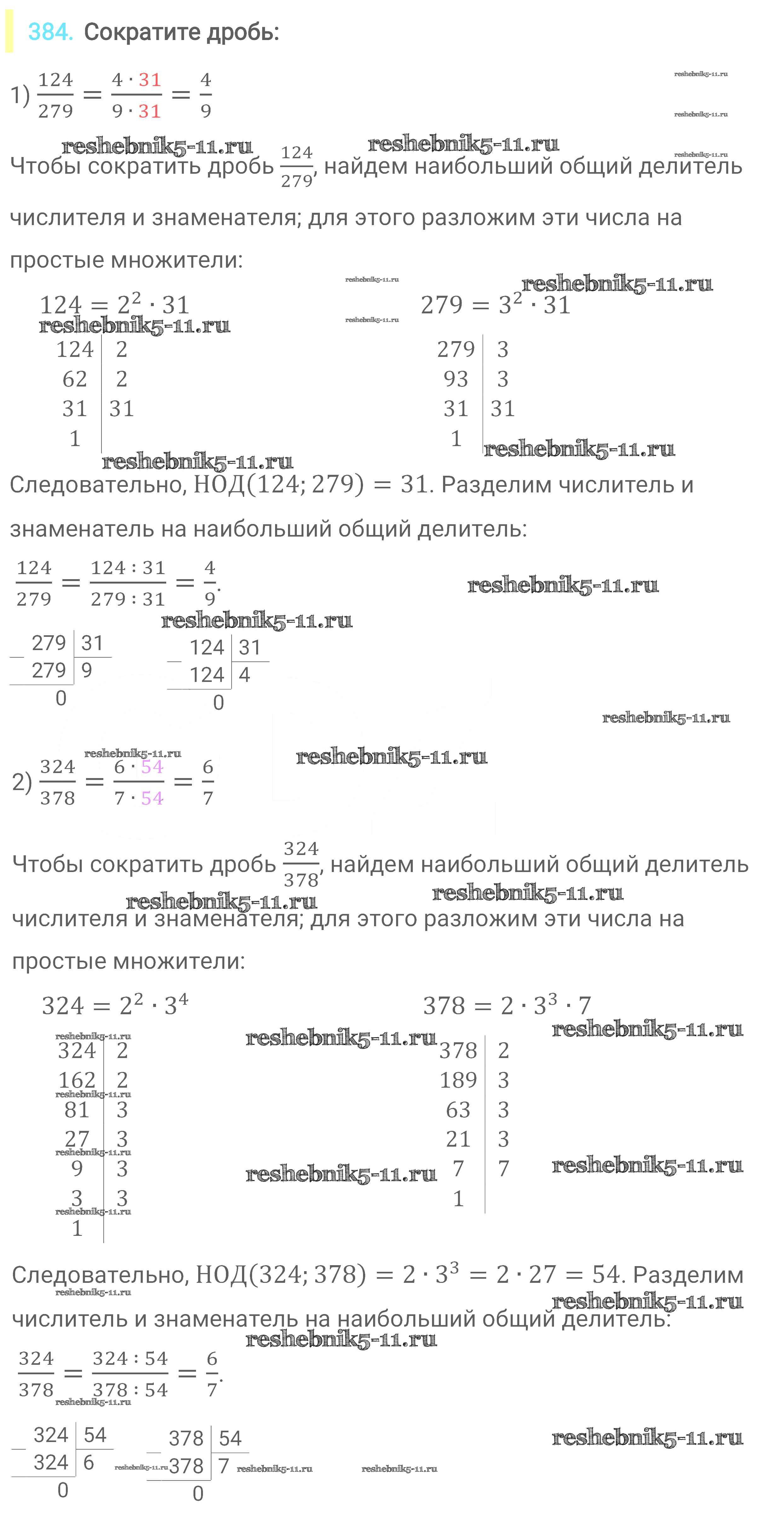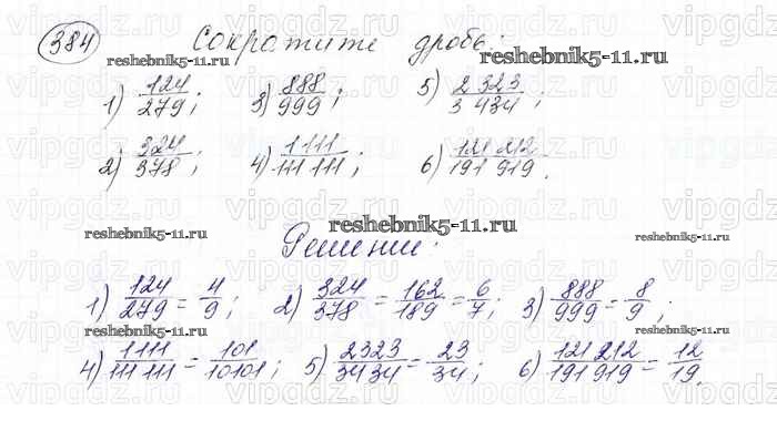 Готовая домашняя работа с ответами по Математике за 6 класс Мерзляк, Полонский, Якир Учебник Алгоритм успеха Вентана-граф 2016 ФГОС - Глава 2. Обыкновенные дроби (упражнения) 384