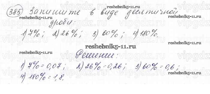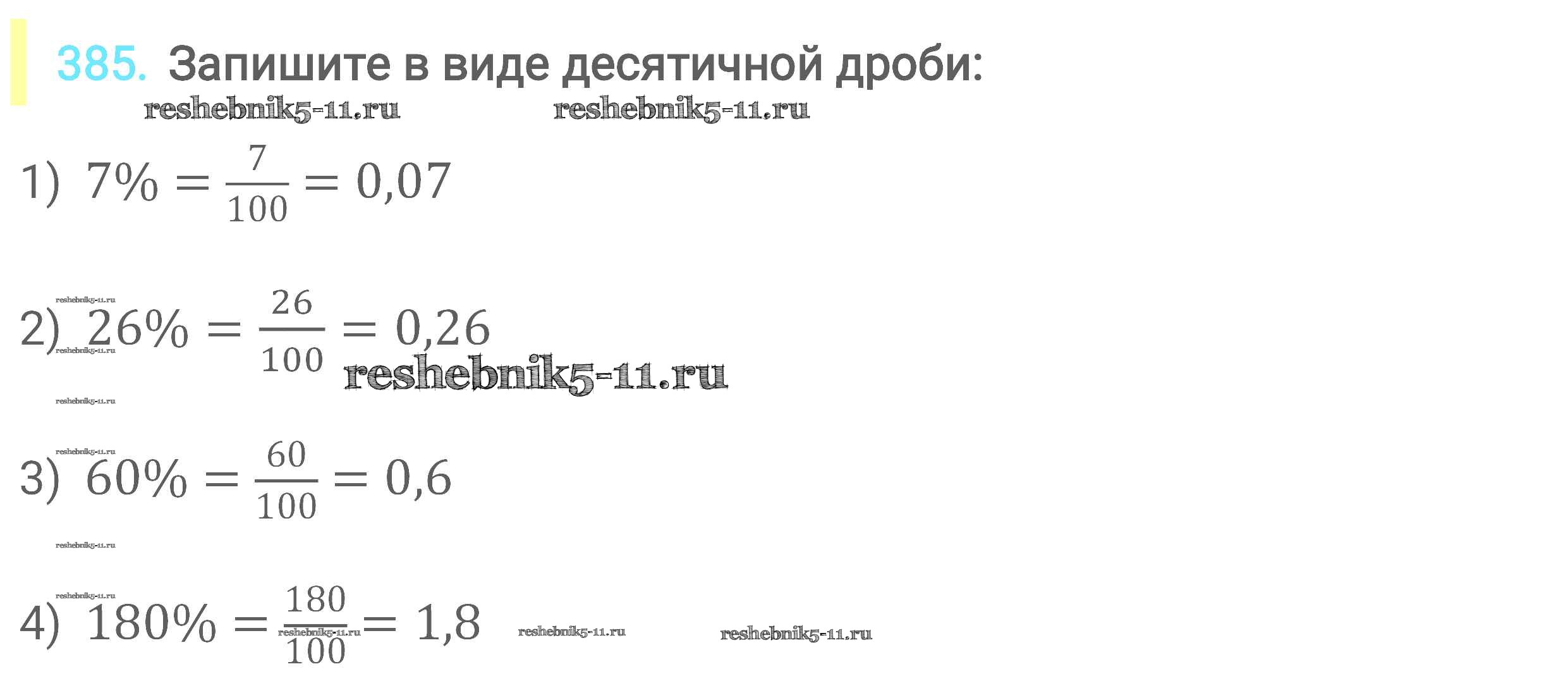 Готовая домашняя работа с ответами по Математике за 6 класс Мерзляк, Полонский, Якир Учебник Алгоритм успеха Вентана-граф 2016 ФГОС - Глава 2. Обыкновенные дроби (упражнения) 385