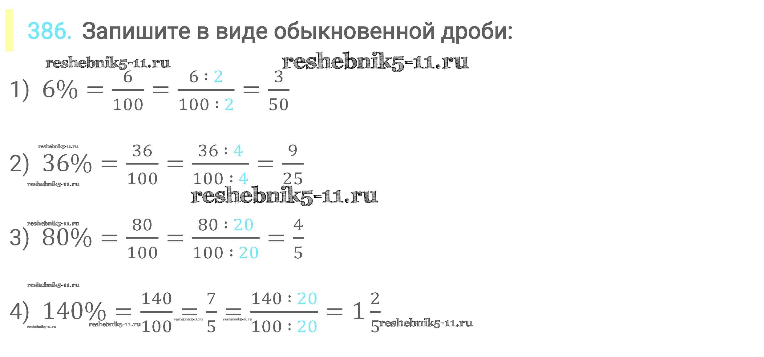 Готовая домашняя работа с ответами по Математике за 6 класс Мерзляк, Полонский, Якир Учебник Алгоритм успеха Вентана-граф 2016 ФГОС - Глава 2. Обыкновенные дроби (упражнения) 386