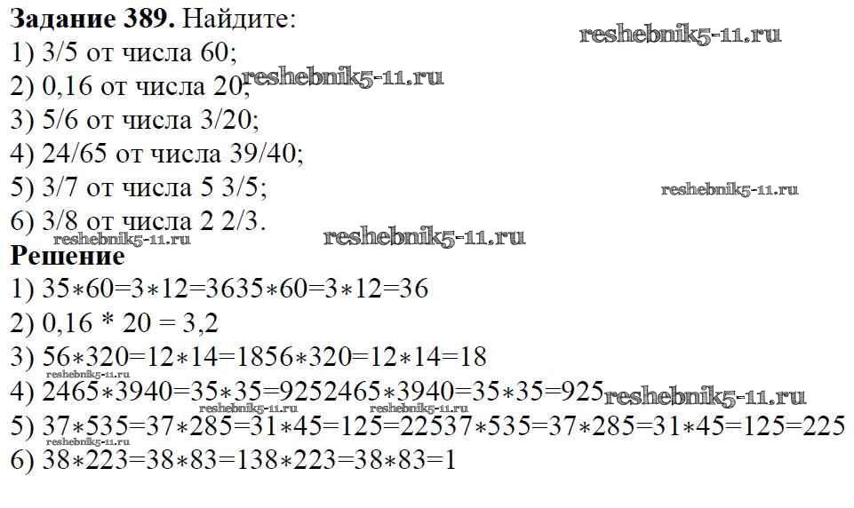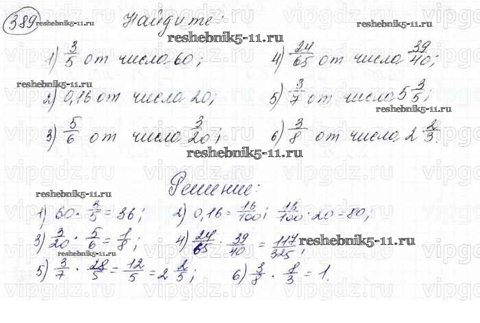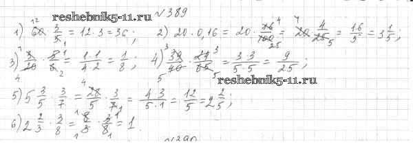 Готовая домашняя работа с ответами по Математике за 6 класс Мерзляк, Полонский, Якир Учебник Алгоритм успеха Вентана-граф 2016 ФГОС - Глава 2. Обыкновенные дроби (упражнения) 389