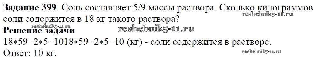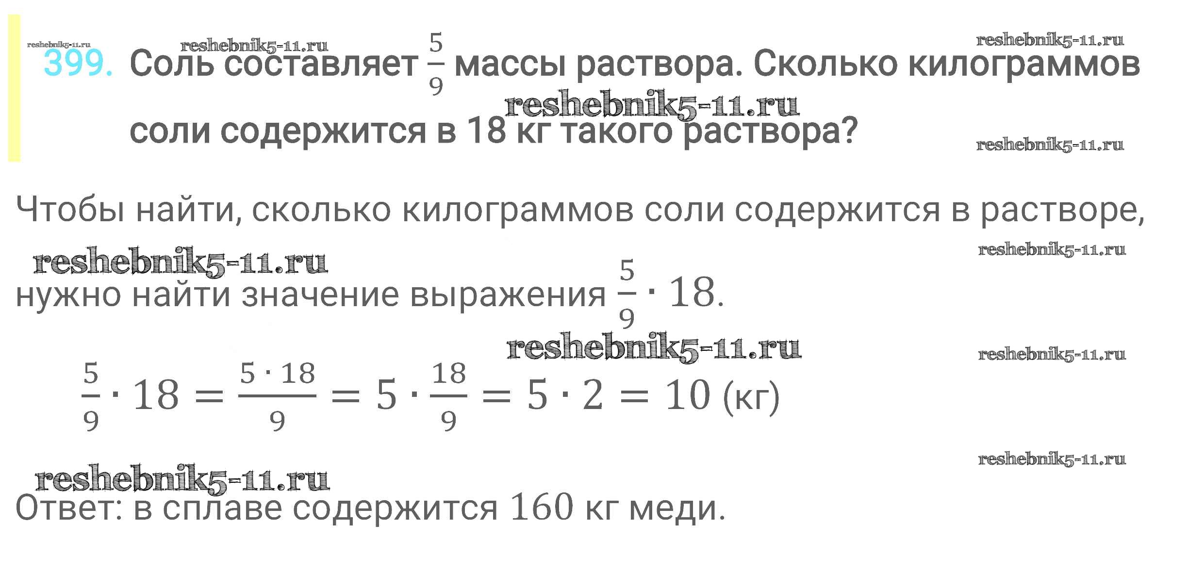 Готовая домашняя работа с ответами по Математике за 6 класс Мерзляк, Полонский, Якир Учебник Алгоритм успеха Вентана-граф 2016 ФГОС - Глава 2. Обыкновенные дроби (упражнения) 399