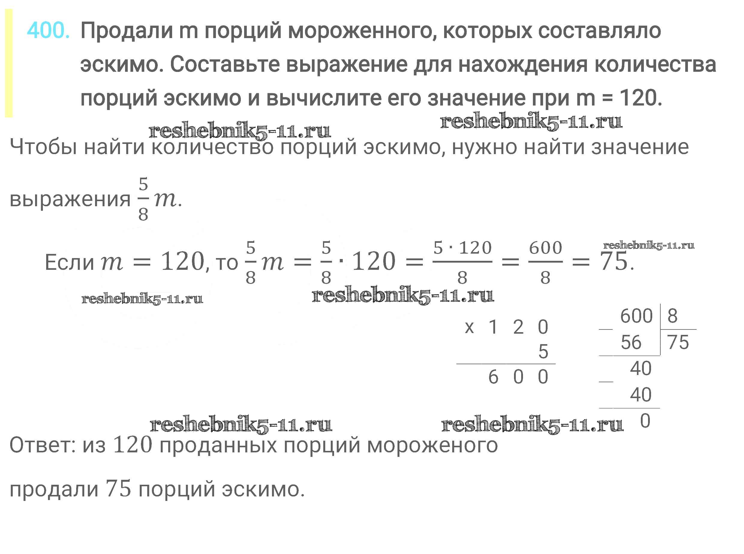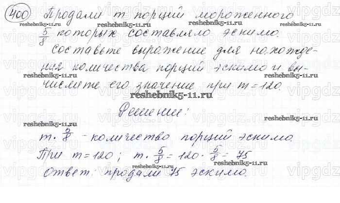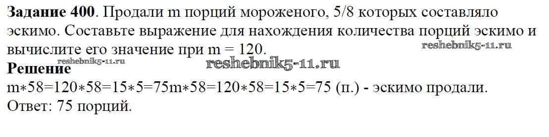 Готовая домашняя работа с ответами по Математике за 6 класс Мерзляк, Полонский, Якир Учебник Алгоритм успеха Вентана-граф 2016 ФГОС - Глава 2. Обыкновенные дроби (упражнения) 400