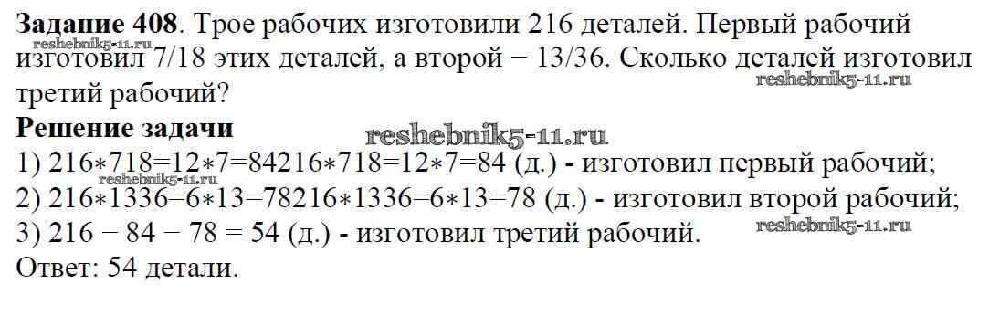 Готовая домашняя работа с ответами по Математике за 6 класс Мерзляк, Полонский, Якир Учебник Алгоритм успеха Вентана-граф 2016 ФГОС - Глава 2. Обыкновенные дроби (упражнения) 408