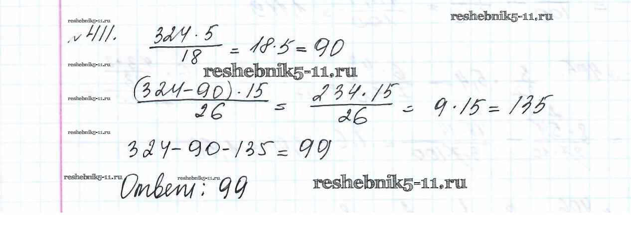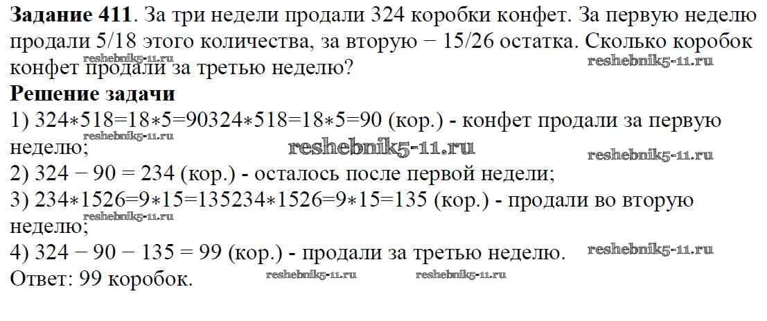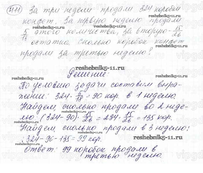 Готовая домашняя работа с ответами по Математике за 6 класс Мерзляк, Полонский, Якир Учебник Алгоритм успеха Вентана-граф 2016 ФГОС - Глава 2. Обыкновенные дроби (упражнения) 411