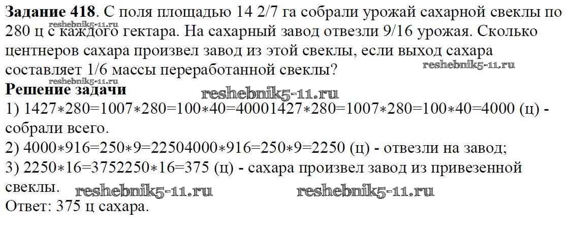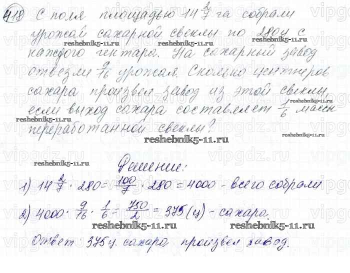 Готовая домашняя работа с ответами по Математике за 6 класс Мерзляк, Полонский, Якир Учебник Алгоритм успеха Вентана-граф 2016 ФГОС - Глава 2. Обыкновенные дроби (упражнения) 418