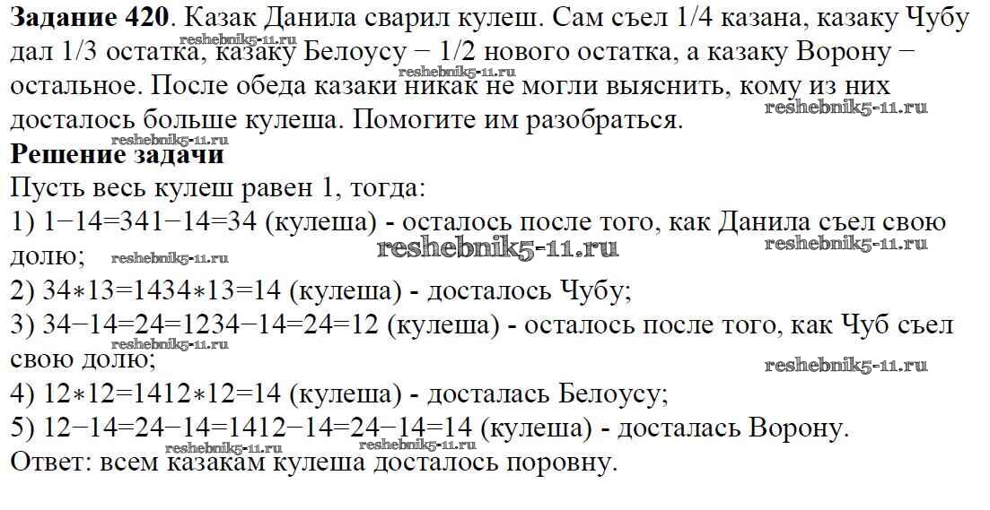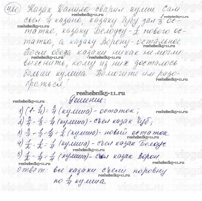 Готовая домашняя работа с ответами по Математике за 6 класс Мерзляк, Полонский, Якир Учебник Алгоритм успеха Вентана-граф 2016 ФГОС - Глава 2. Обыкновенные дроби (упражнения) 420