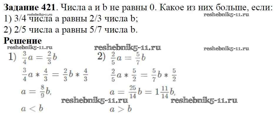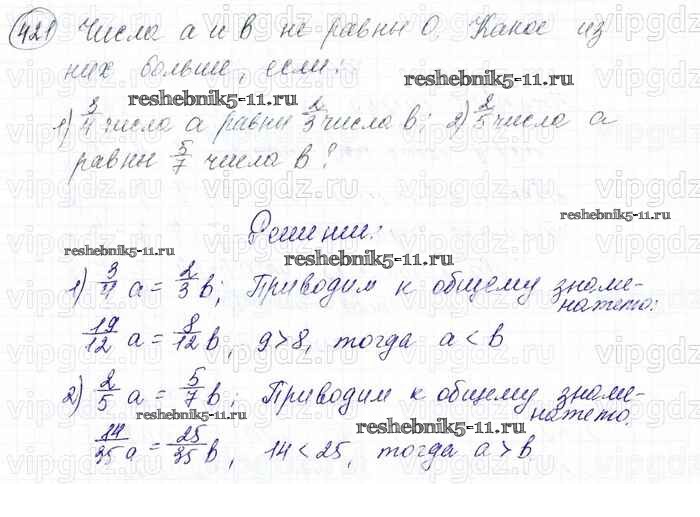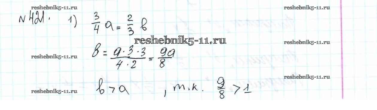 Готовая домашняя работа с ответами по Математике за 6 класс Мерзляк, Полонский, Якир Учебник Алгоритм успеха Вентана-граф 2016 ФГОС - Глава 2. Обыкновенные дроби (упражнения) 421