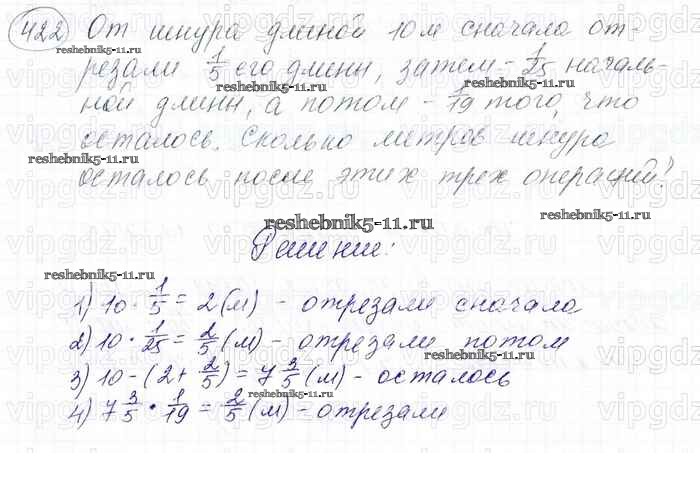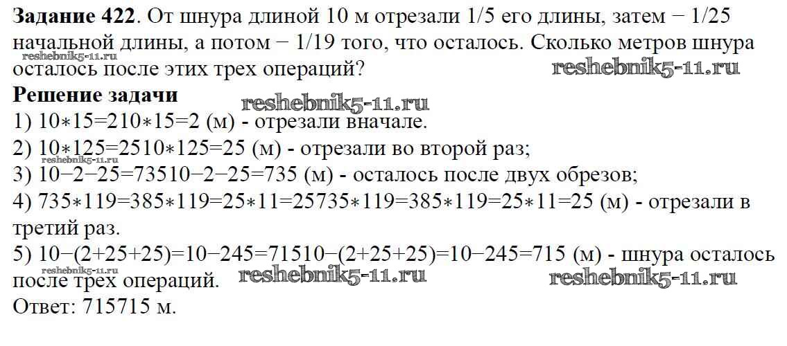Готовая домашняя работа с ответами по Математике за 6 класс Мерзляк, Полонский, Якир Учебник Алгоритм успеха Вентана-граф 2016 ФГОС - Глава 2. Обыкновенные дроби (упражнения) 422
