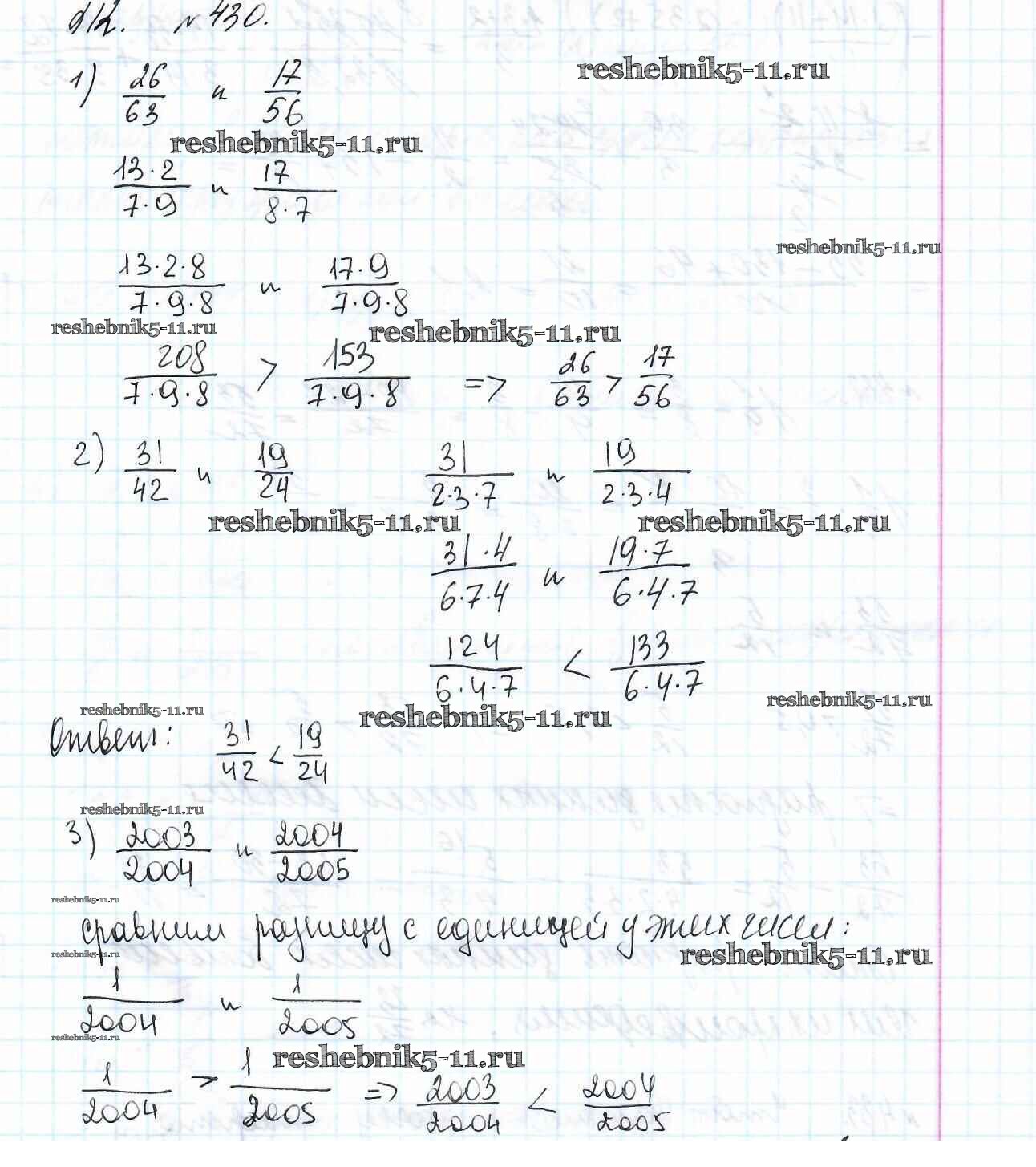 Готовая домашняя работа с ответами по Математике за 6 класс Мерзляк, Полонский, Якир Учебник Алгоритм успеха Вентана-граф 2016 ФГОС - Глава 2. Обыкновенные дроби (упражнения) 430