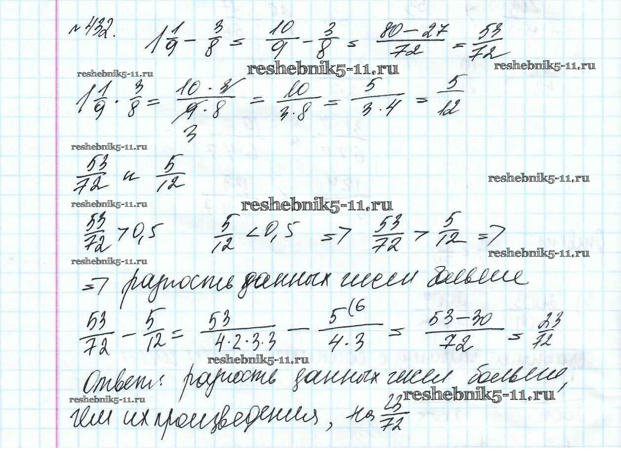 Готовая домашняя работа с ответами по Математике за 6 класс Мерзляк, Полонский, Якир Учебник Алгоритм успеха Вентана-граф 2016 ФГОС - Глава 2. Обыкновенные дроби (упражнения) 432