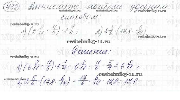 Готовая домашняя работа с ответами по Математике за 6 класс Мерзляк, Полонский, Якир Учебник Алгоритм успеха Вентана-граф 2016 ФГОС - Глава 2. Обыкновенные дроби (упражнения) 438
