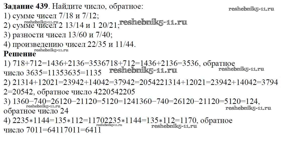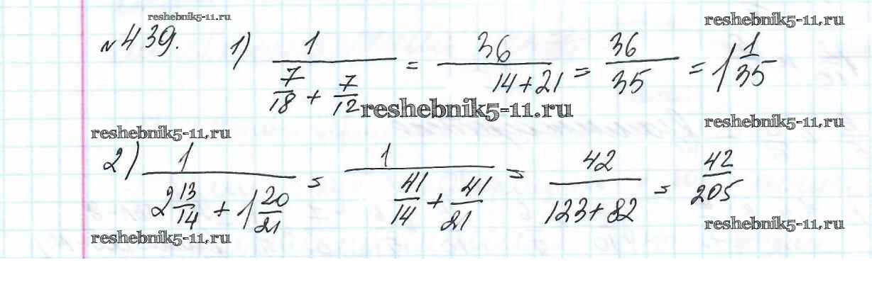 Готовая домашняя работа с ответами по Математике за 6 класс Мерзляк, Полонский, Якир Учебник Алгоритм успеха Вентана-граф 2016 ФГОС - Глава 2. Обыкновенные дроби (упражнения) 439