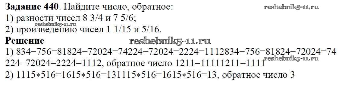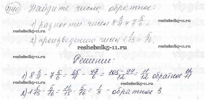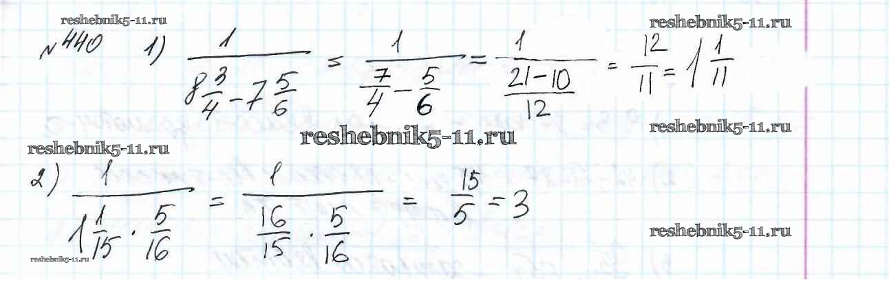 Готовая домашняя работа с ответами по Математике за 6 класс Мерзляк, Полонский, Якир Учебник Алгоритм успеха Вентана-граф 2016 ФГОС - Глава 2. Обыкновенные дроби (упражнения) 440