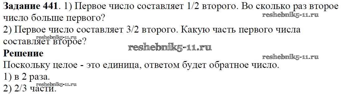 Готовая домашняя работа с ответами по Математике за 6 класс Мерзляк, Полонский, Якир Учебник Алгоритм успеха Вентана-граф 2016 ФГОС - Глава 2. Обыкновенные дроби (упражнения) 441
