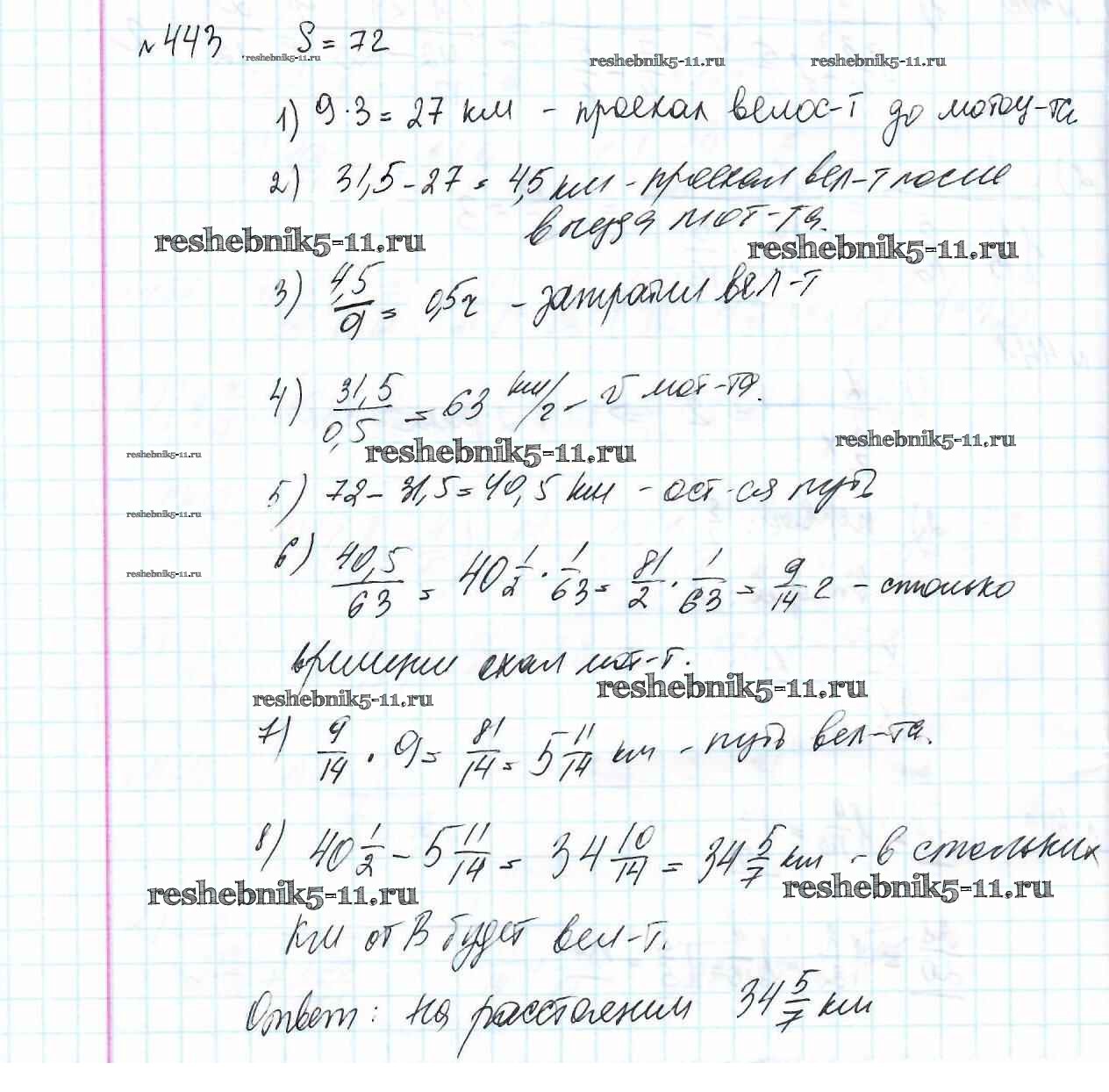 Готовая домашняя работа с ответами по Математике за 6 класс Мерзляк, Полонский, Якир Учебник Алгоритм успеха Вентана-граф 2016 ФГОС - Глава 2. Обыкновенные дроби (упражнения) 443