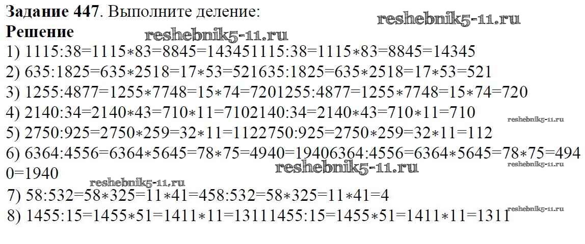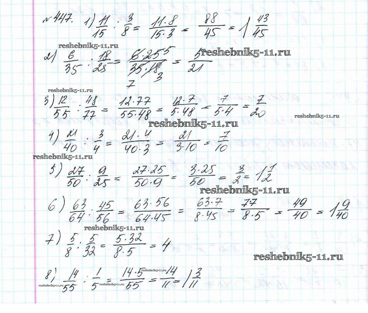 Готовая домашняя работа с ответами по Математике за 6 класс Мерзляк, Полонский, Якир Учебник Алгоритм успеха Вентана-граф 2016 ФГОС - Глава 2. Обыкновенные дроби (упражнения) 447
