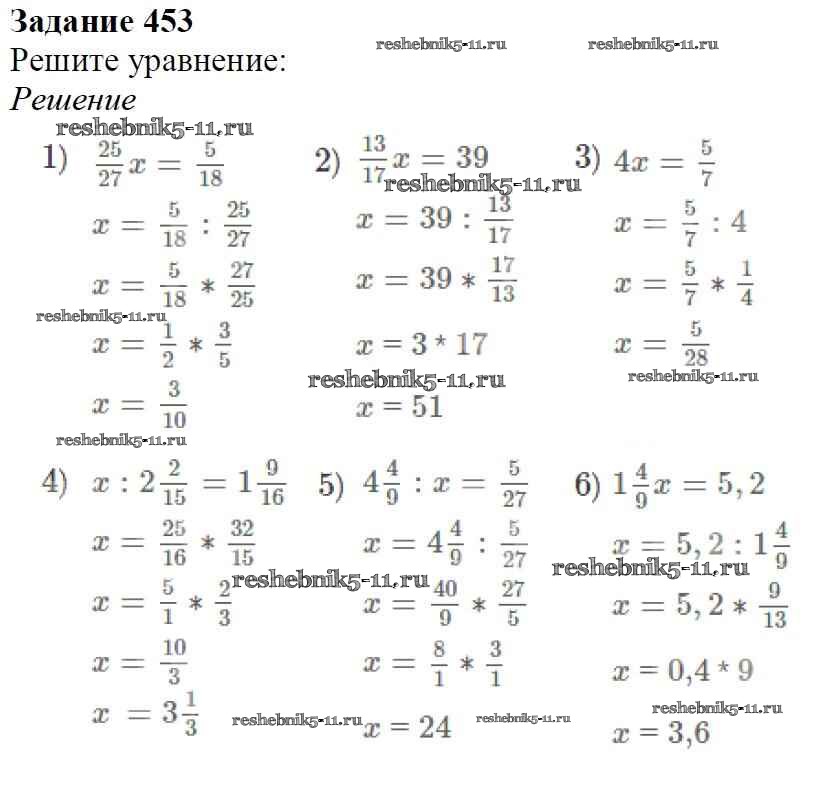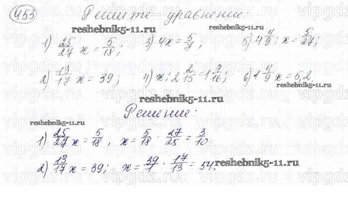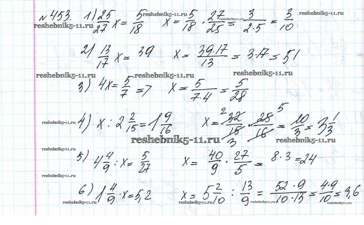 Готовая домашняя работа с ответами по Математике за 6 класс Мерзляк, Полонский, Якир Учебник Алгоритм успеха Вентана-граф 2016 ФГОС - Глава 2. Обыкновенные дроби (упражнения) 453