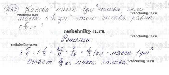 Готовая домашняя работа с ответами по Математике за 6 класс Мерзляк, Полонский, Якир Учебник Алгоритм успеха Вентана-граф 2016 ФГОС - Глава 2. Обыкновенные дроби (упражнения) 457