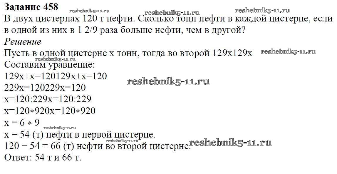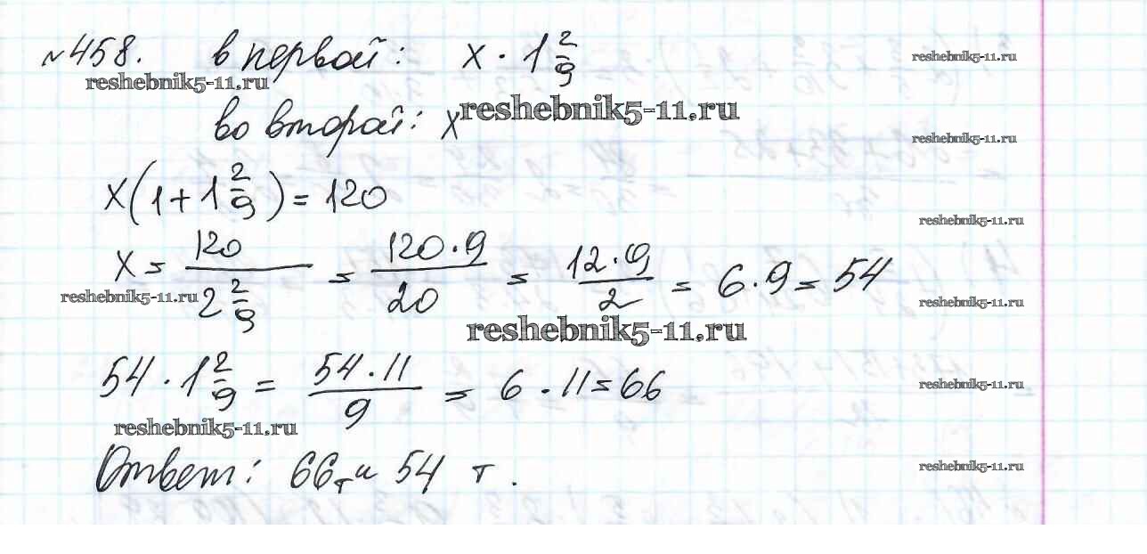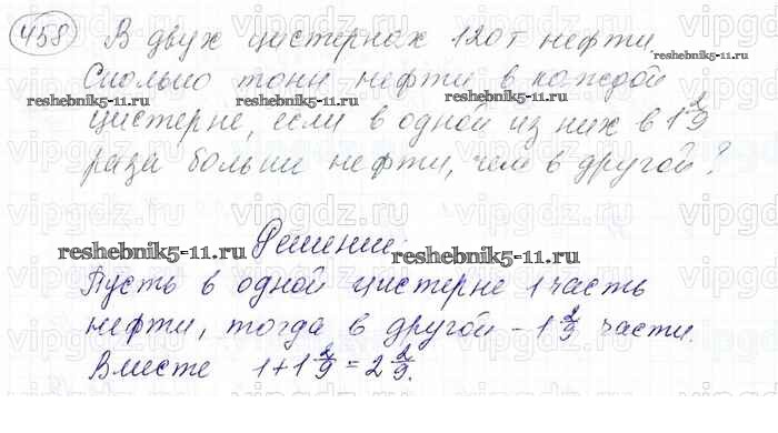Готовая домашняя работа с ответами по Математике за 6 класс Мерзляк, Полонский, Якир Учебник Алгоритм успеха Вентана-граф 2016 ФГОС - Глава 2. Обыкновенные дроби (упражнения) 458