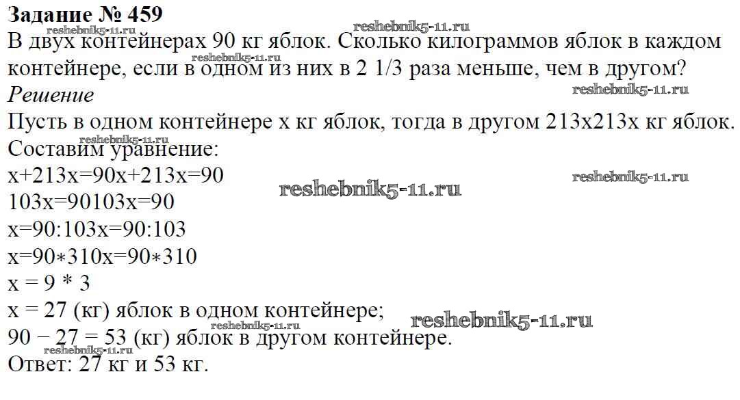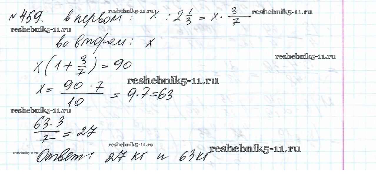 Готовая домашняя работа с ответами по Математике за 6 класс Мерзляк, Полонский, Якир Учебник Алгоритм успеха Вентана-граф 2016 ФГОС - Глава 2. Обыкновенные дроби (упражнения) 459