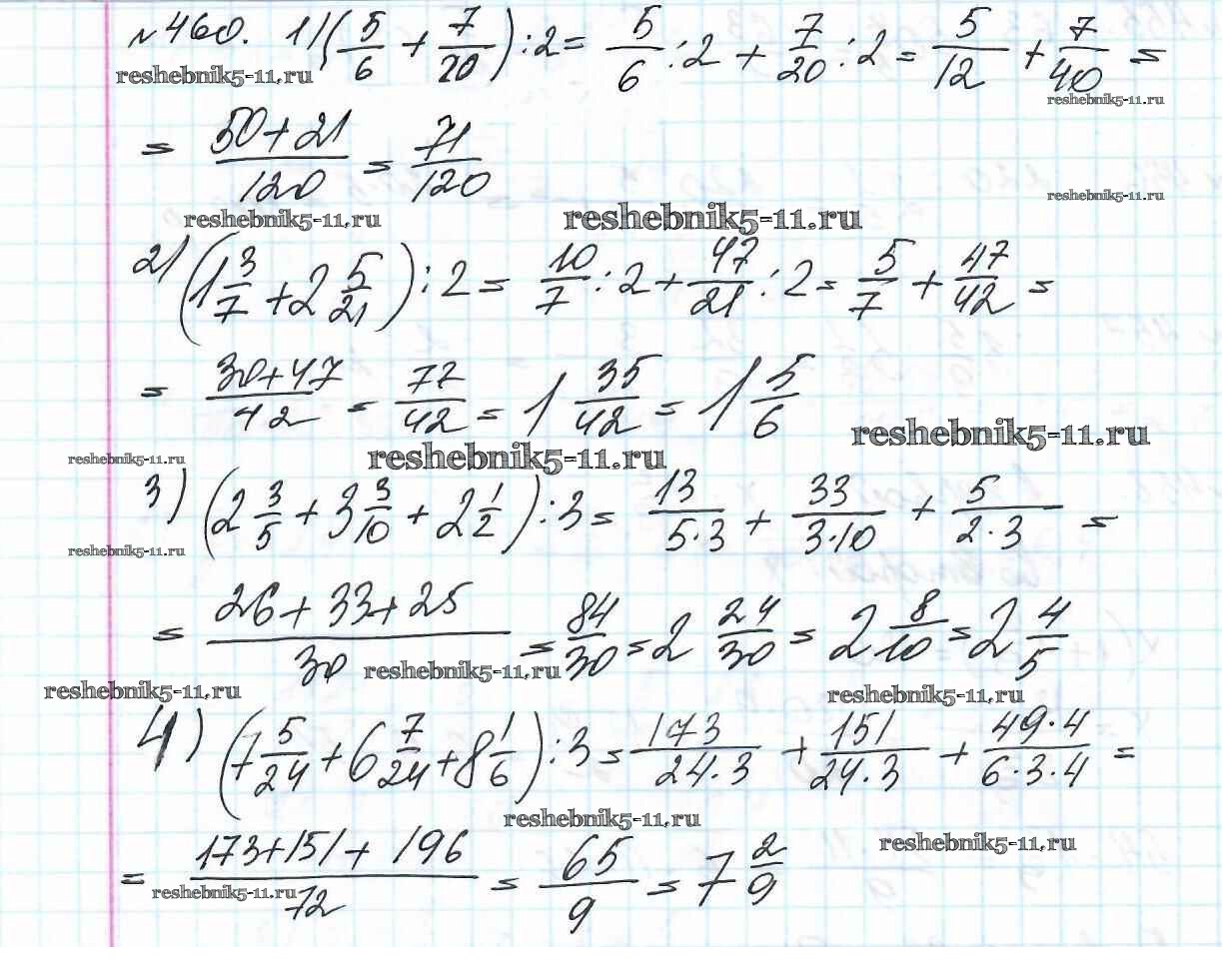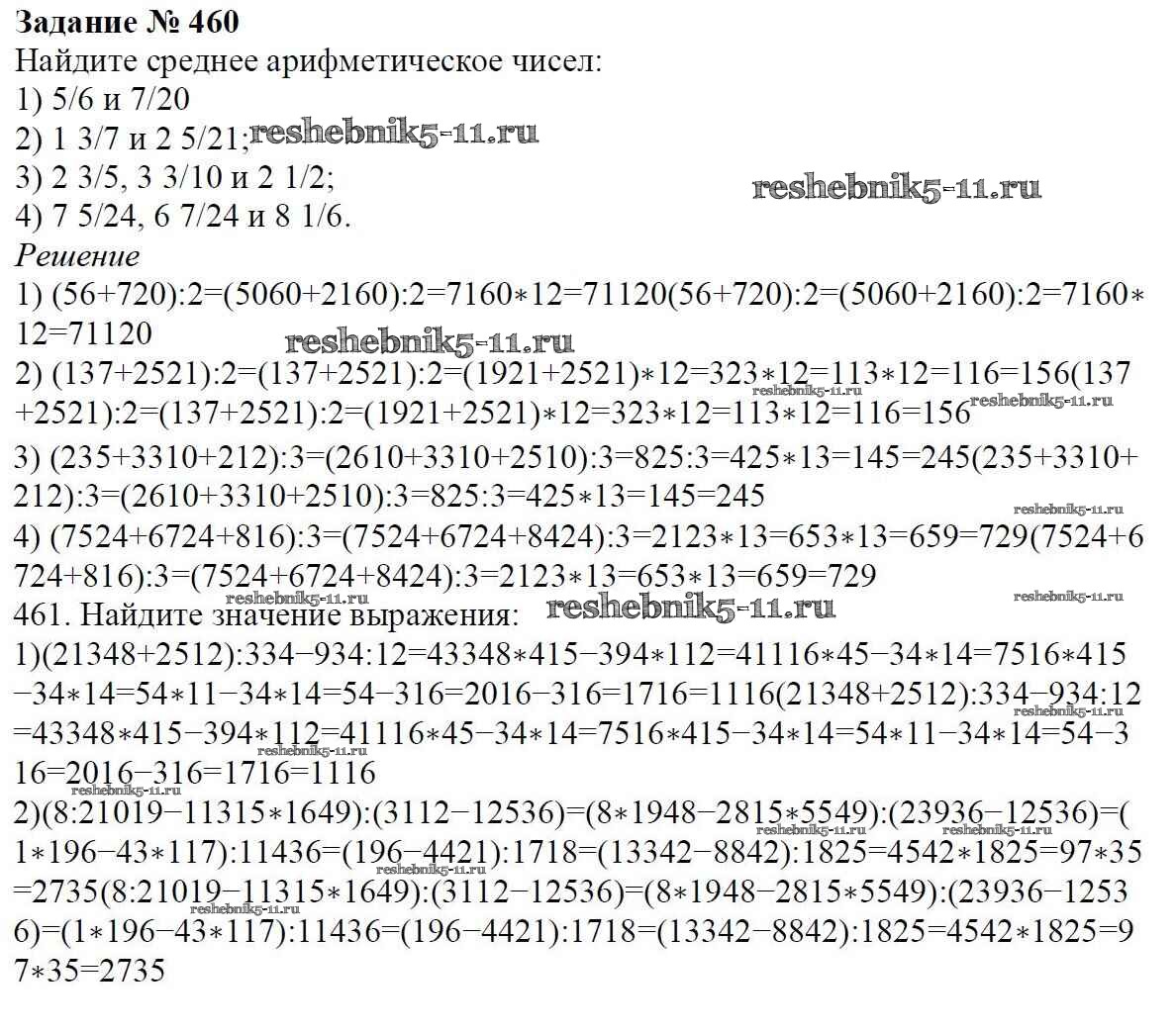 Готовая домашняя работа с ответами по Математике за 6 класс Мерзляк, Полонский, Якир Учебник Алгоритм успеха Вентана-граф 2016 ФГОС - Глава 2. Обыкновенные дроби (упражнения) 460