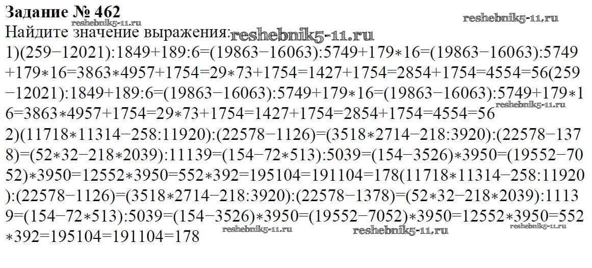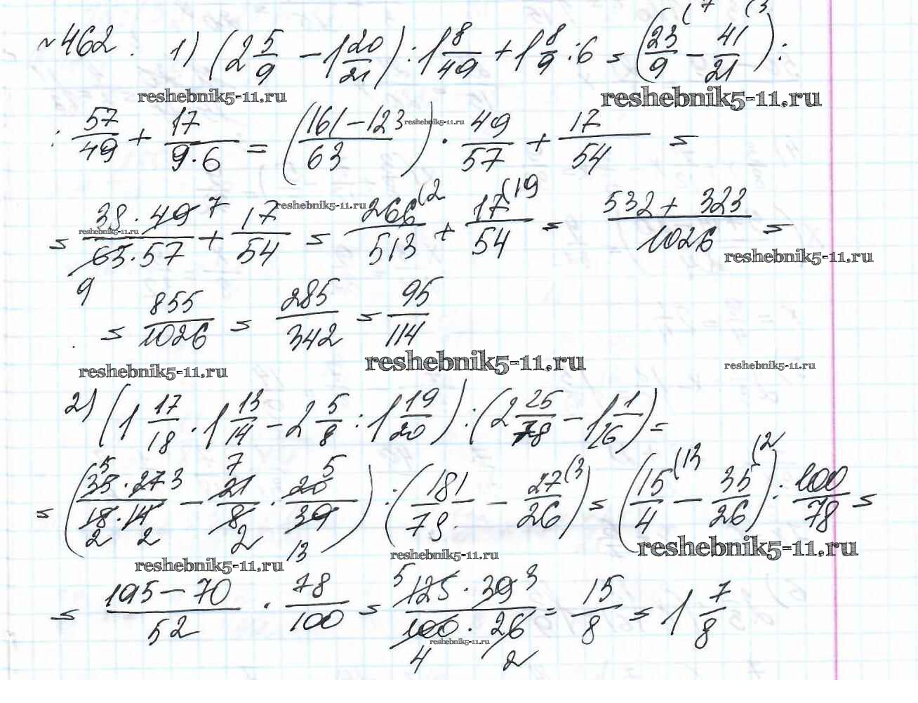 Готовая домашняя работа с ответами по Математике за 6 класс Мерзляк, Полонский, Якир Учебник Алгоритм успеха Вентана-граф 2016 ФГОС - Глава 2. Обыкновенные дроби (упражнения) 462