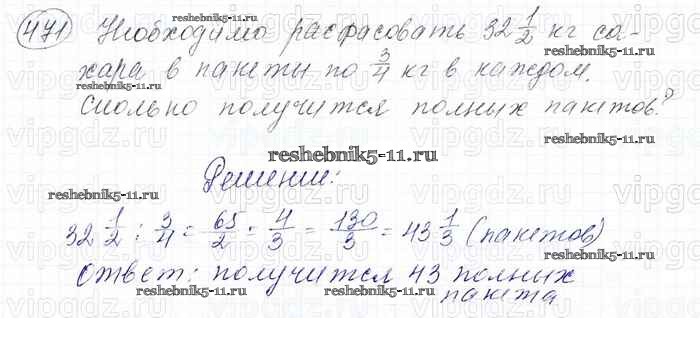 Готовая домашняя работа с ответами по Математике за 6 класс Мерзляк, Полонский, Якир Учебник Алгоритм успеха Вентана-граф 2016 ФГОС - Глава 2. Обыкновенные дроби (упражнения) 471