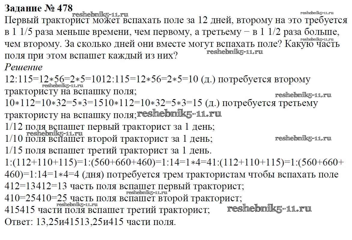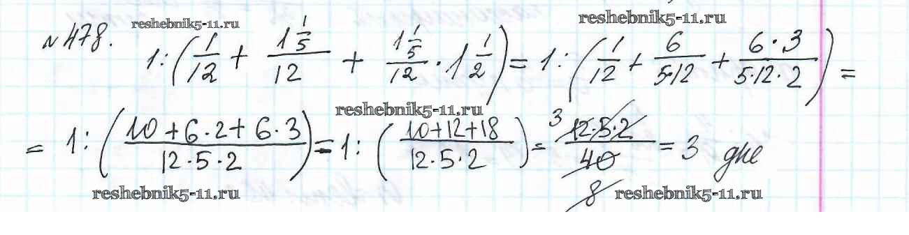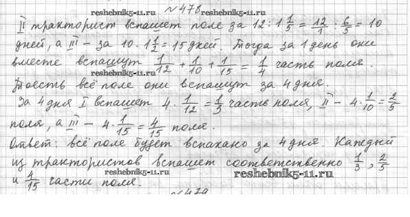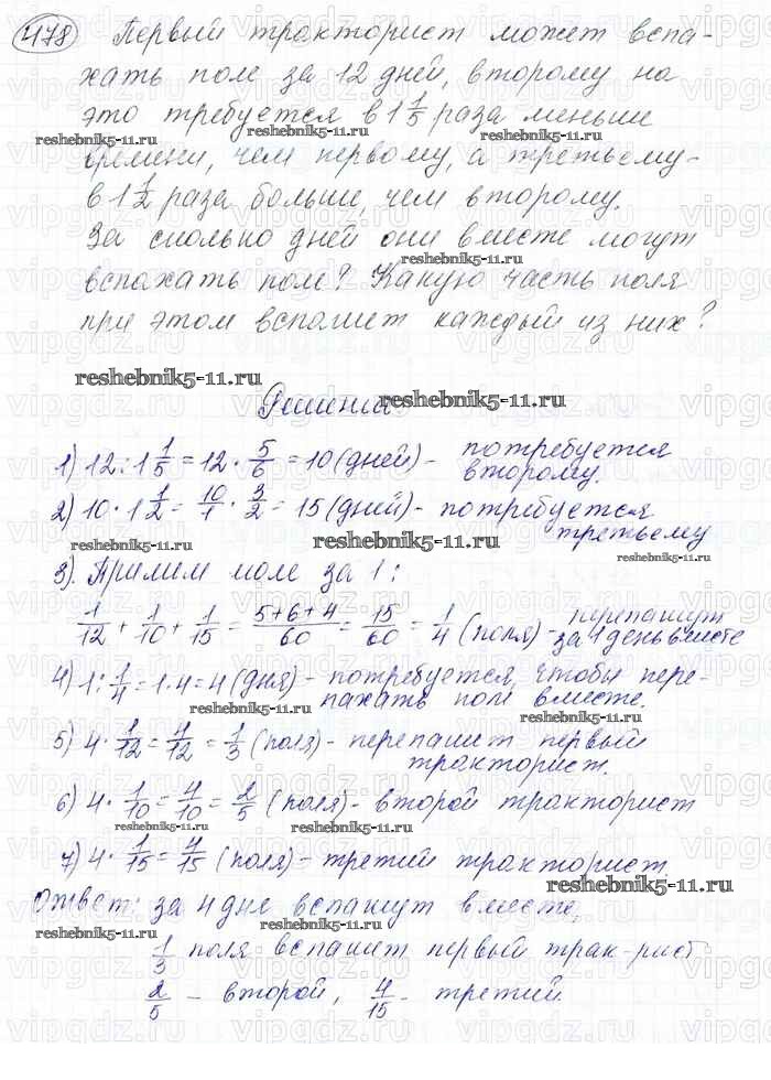 Готовая домашняя работа с ответами по Математике за 6 класс Мерзляк, Полонский, Якир Учебник Алгоритм успеха Вентана-граф 2016 ФГОС - Глава 2. Обыкновенные дроби (упражнения) 478