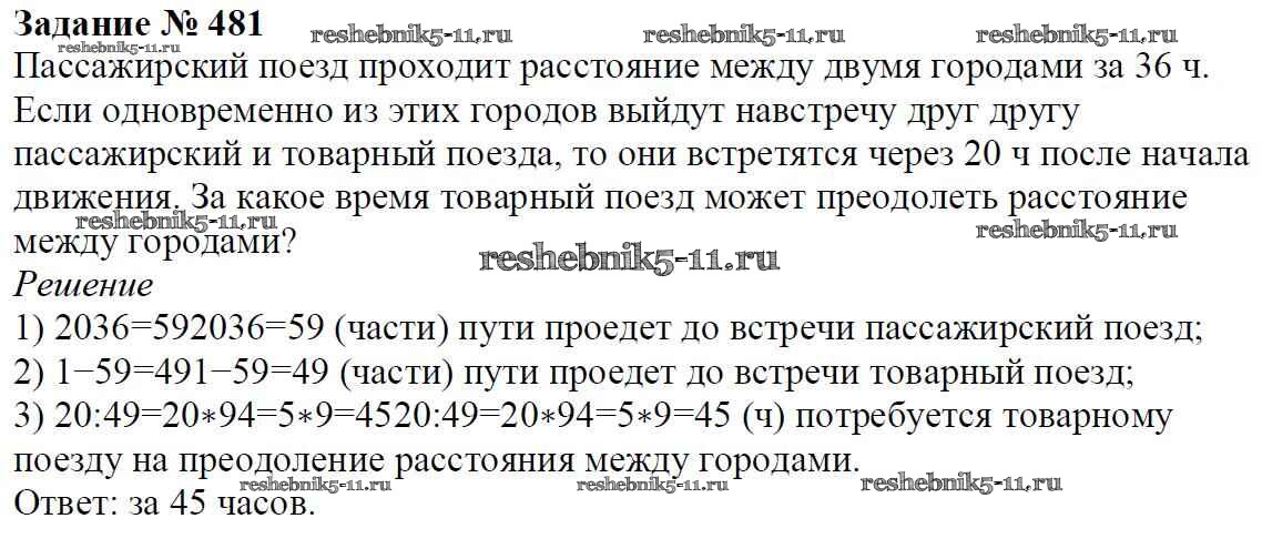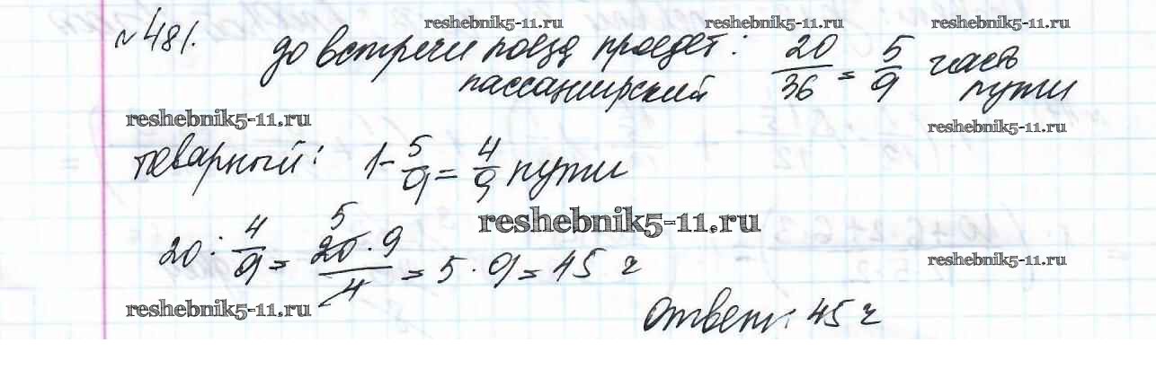 Готовая домашняя работа с ответами по Математике за 6 класс Мерзляк, Полонский, Якир Учебник Алгоритм успеха Вентана-граф 2016 ФГОС - Глава 2. Обыкновенные дроби (упражнения) 481