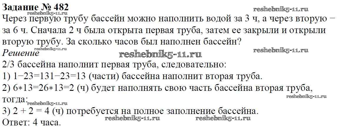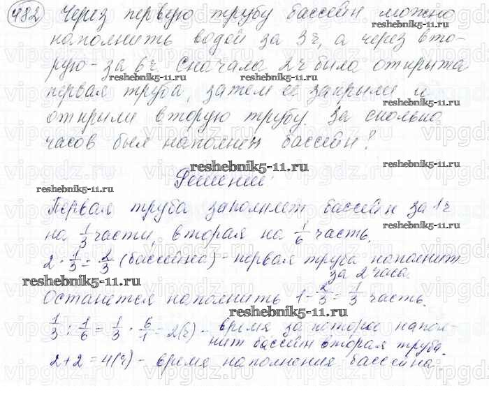 Готовая домашняя работа с ответами по Математике за 6 класс Мерзляк, Полонский, Якир Учебник Алгоритм успеха Вентана-граф 2016 ФГОС - Глава 2. Обыкновенные дроби (упражнения) 482