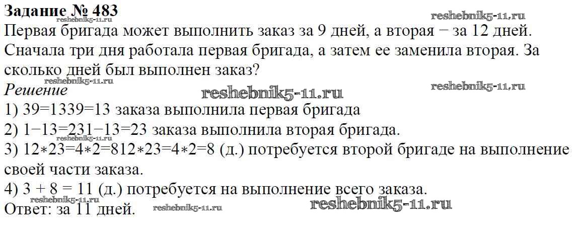 Готовая домашняя работа с ответами по Математике за 6 класс Мерзляк, Полонский, Якир Учебник Алгоритм успеха Вентана-граф 2016 ФГОС - Глава 2. Обыкновенные дроби (упражнения) 483