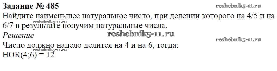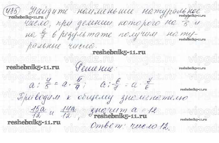 Готовая домашняя работа с ответами по Математике за 6 класс Мерзляк, Полонский, Якир Учебник Алгоритм успеха Вентана-граф 2016 ФГОС - Глава 2. Обыкновенные дроби (упражнения) 485