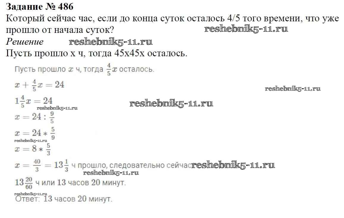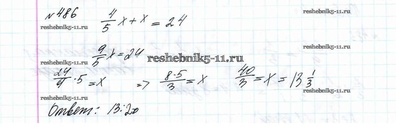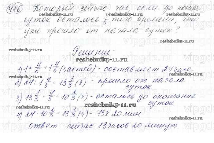 Готовая домашняя работа с ответами по Математике за 6 класс Мерзляк, Полонский, Якир Учебник Алгоритм успеха Вентана-граф 2016 ФГОС - Глава 2. Обыкновенные дроби (упражнения) 486