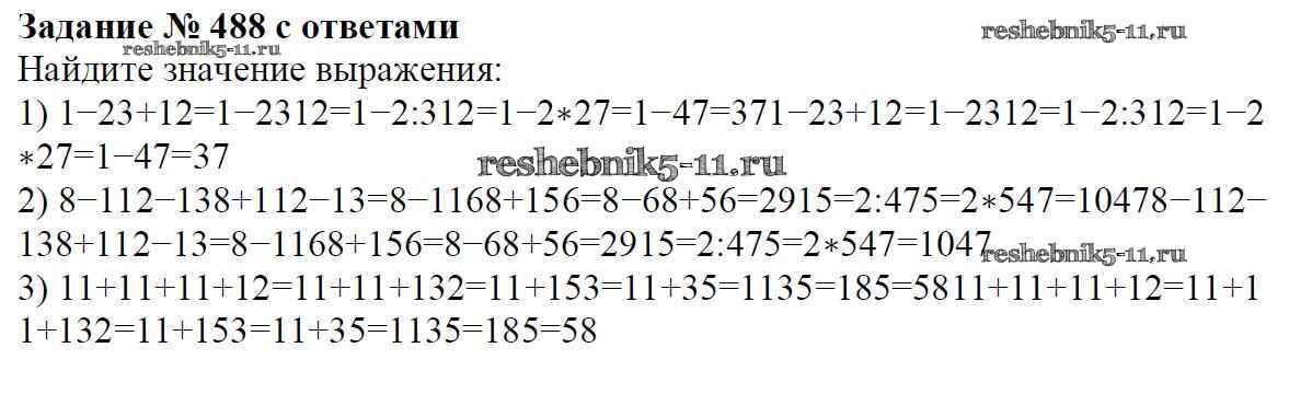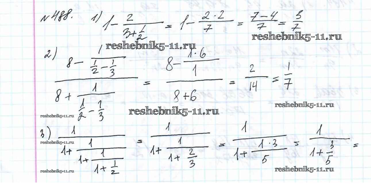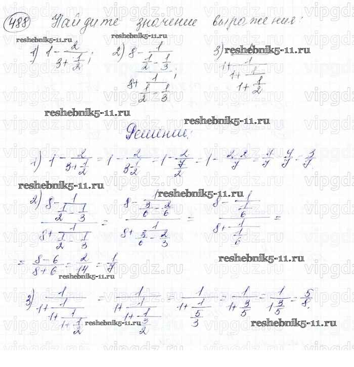 Готовая домашняя работа с ответами по Математике за 6 класс Мерзляк, Полонский, Якир Учебник Алгоритм успеха Вентана-граф 2016 ФГОС - Глава 2. Обыкновенные дроби (упражнения) 488