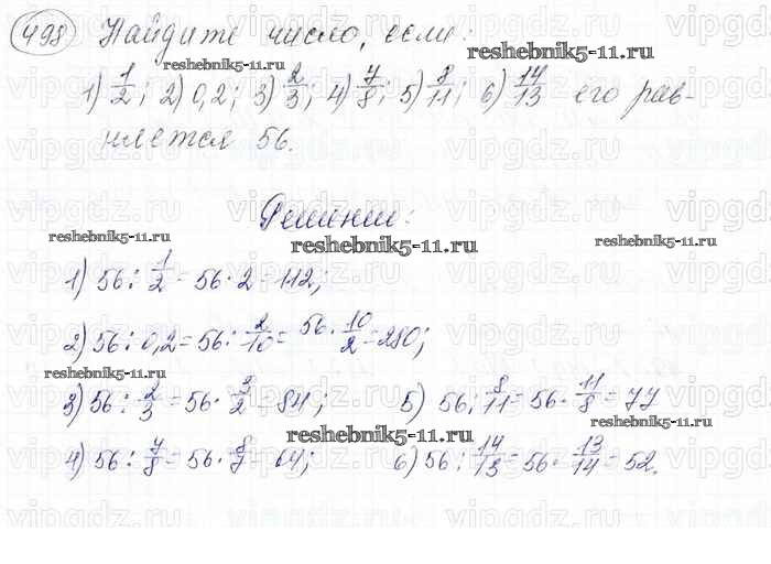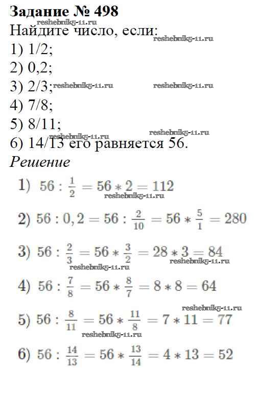 Готовая домашняя работа с ответами по Математике за 6 класс Мерзляк, Полонский, Якир Учебник Алгоритм успеха Вентана-граф 2016 ФГОС - Глава 2. Обыкновенные дроби (упражнения) 498