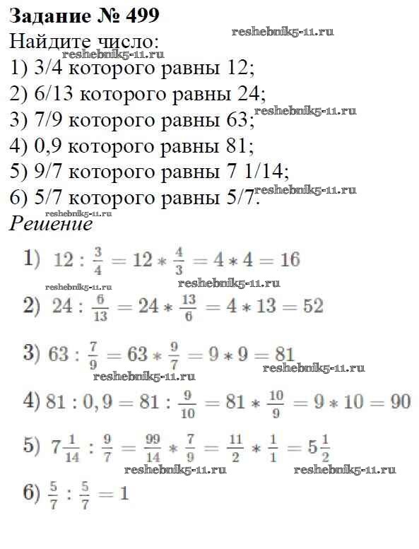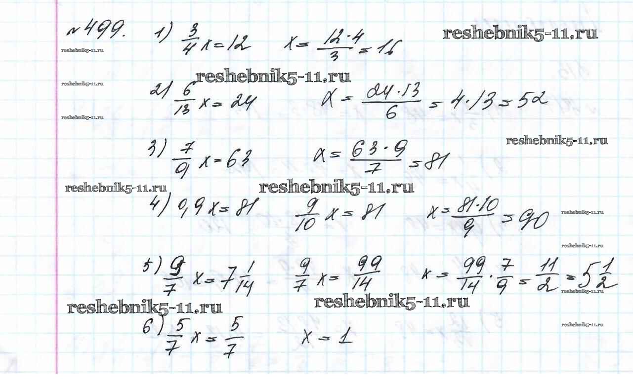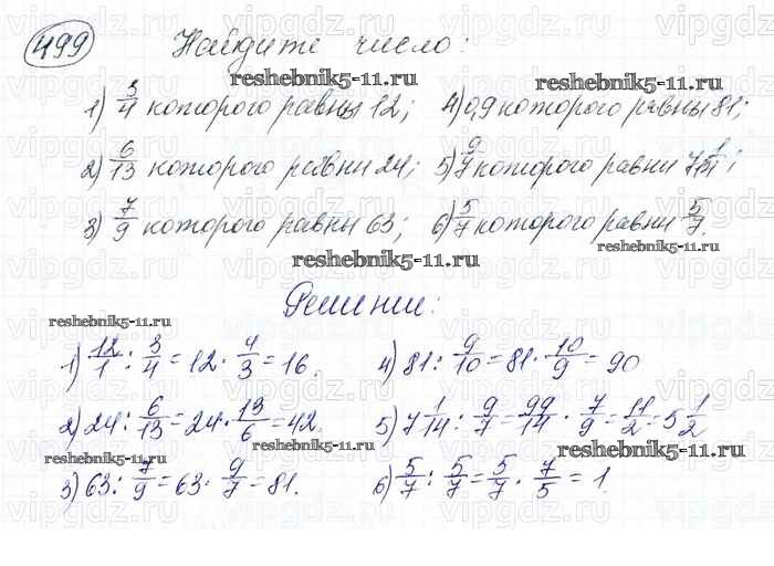 Готовая домашняя работа с ответами по Математике за 6 класс Мерзляк, Полонский, Якир Учебник Алгоритм успеха Вентана-граф 2016 ФГОС - Глава 2. Обыкновенные дроби (упражнения) 499