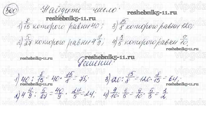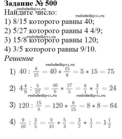 Готовая домашняя работа с ответами по Математике за 6 класс Мерзляк, Полонский, Якир Учебник Алгоритм успеха Вентана-граф 2016 ФГОС - Глава 2. Обыкновенные дроби (упражнения) 500