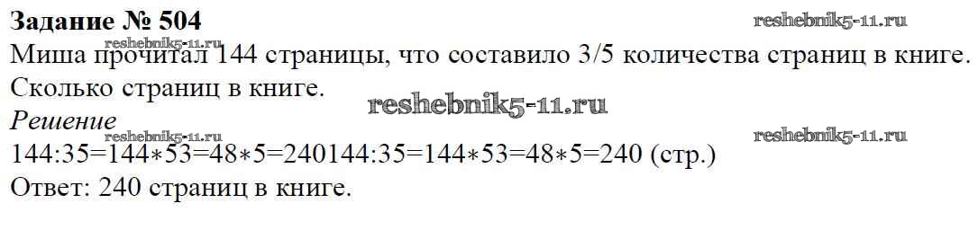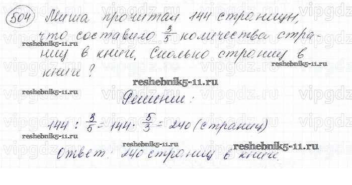 Готовая домашняя работа с ответами по Математике за 6 класс Мерзляк, Полонский, Якир Учебник Алгоритм успеха Вентана-граф 2016 ФГОС - Глава 2. Обыкновенные дроби (упражнения) 504
