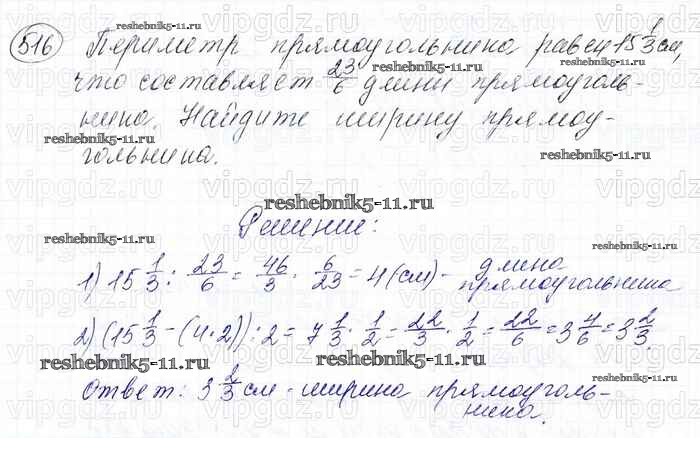Готовая домашняя работа с ответами по Математике за 6 класс Мерзляк, Полонский, Якир Учебник Алгоритм успеха Вентана-граф 2016 ФГОС - Глава 2. Обыкновенные дроби (упражнения) 516