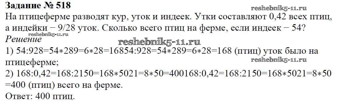 Готовая домашняя работа с ответами по Математике за 6 класс Мерзляк, Полонский, Якир Учебник Алгоритм успеха Вентана-граф 2016 ФГОС - Глава 2. Обыкновенные дроби (упражнения) 518