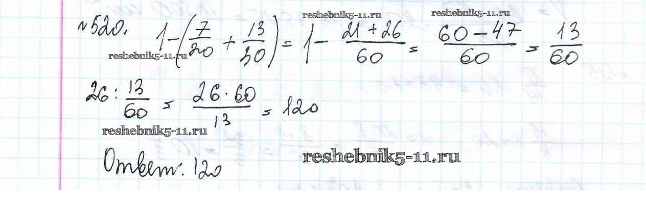 Готовая домашняя работа с ответами по Математике за 6 класс Мерзляк, Полонский, Якир Учебник Алгоритм успеха Вентана-граф 2016 ФГОС - Глава 2. Обыкновенные дроби (упражнения) 520