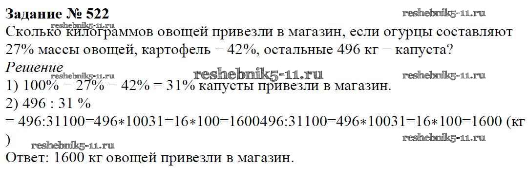 Готовая домашняя работа с ответами по Математике за 6 класс Мерзляк, Полонский, Якир Учебник Алгоритм успеха Вентана-граф 2016 ФГОС - Глава 2. Обыкновенные дроби (упражнения) 522