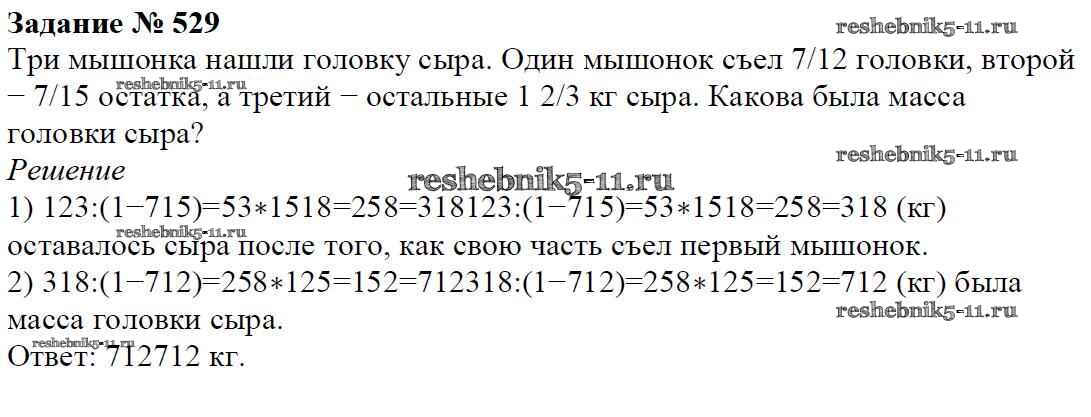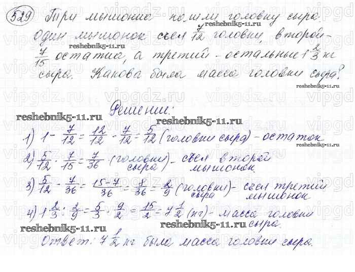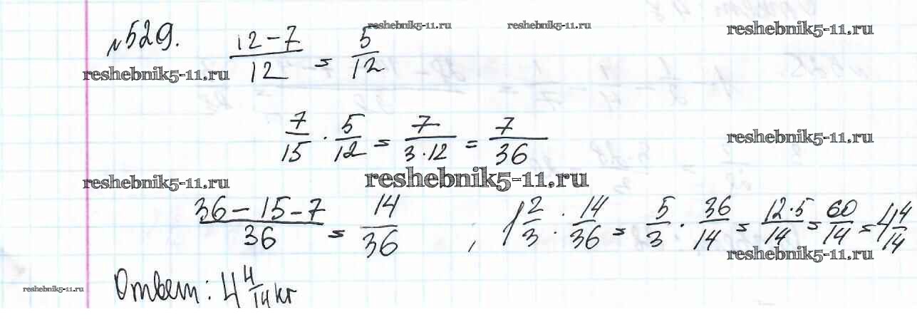 Готовая домашняя работа с ответами по Математике за 6 класс Мерзляк, Полонский, Якир Учебник Алгоритм успеха Вентана-граф 2016 ФГОС - Глава 2. Обыкновенные дроби (упражнения) 529